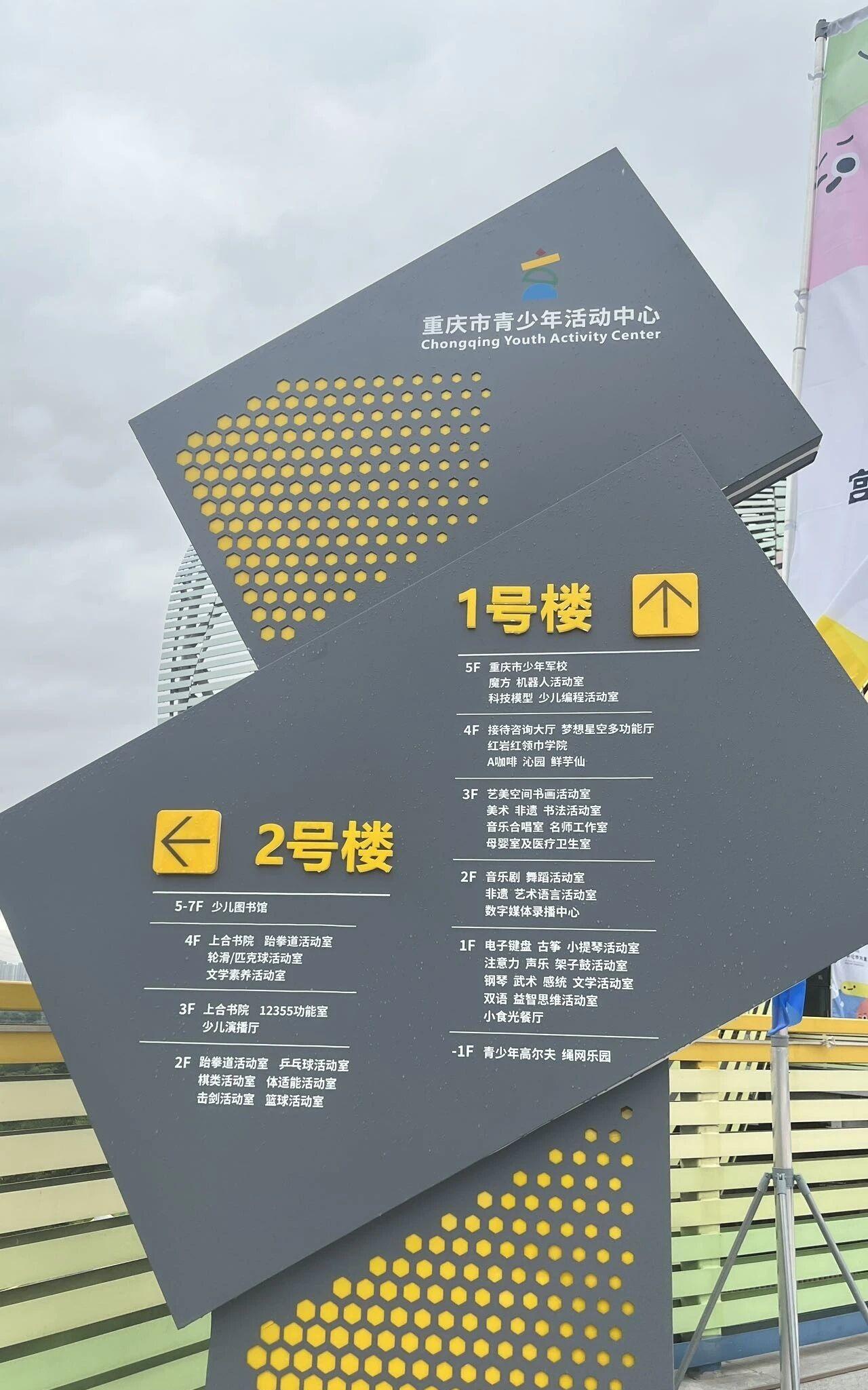 周末,孩子的好去处,就在重庆市青少年活动中心,这里吃的、玩的一应俱全。 重庆市青少年活动中心9月份才投入使用,地址在5号线园博中心站1号出口,沿着大路往前走即可到达。也可以开车前往,下面设有停车场。 1楼有小提琴活动室、声乐室、架子鼓活动室。 2楼有音乐剧舞蹈活动室、艺术语言活动室,数字媒体录播中心在3楼。3楼还有美术书画活动室、书法活动室、名师工作室、母婴室及医疗工作室。 门口设有打卡活动,拍照发朋友圈可获得盲盒、种子、现做糖画。 里面活动丰富,套圈活动和机器人课堂课程很受欢迎。 若在里面饿了,4楼有咖啡师轩宇轩,后面还有铁面包、凉虾、凉糕、绿豆沙等,价格基本都是5块钱,十分合理。 总体而言,这个青少年活动中心对于有相关需求的家长来说是个不错的选择,孩子可以在这里学习绘画、编程、语言、手工制作等。