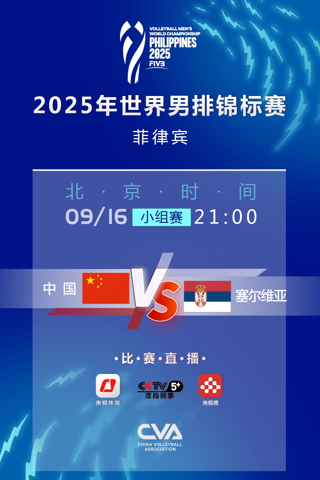 【CCTV5+直播中国男排vs塞尔维亚】 菲律宾男排世锦赛H组第二轮 中国男排将