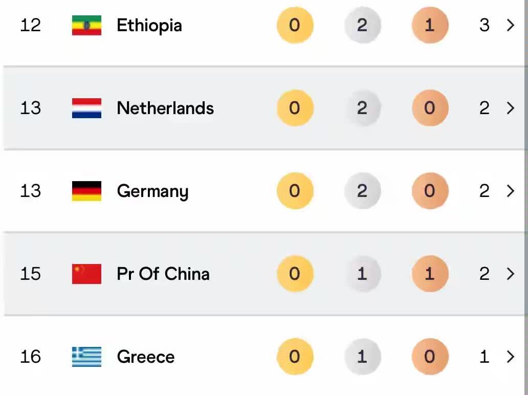 东京田径世锦赛最新金牌榜,中国凭借女子链球赵杰张家乐一银一铜暂居金牌榜第15位,亚洲第一了[流泪][流泪][流泪],其他国家更差 第一仍然是美国5 金2铜 第二肯尼亚2金一铜 第三加拿大2金 第四短跑国家牙买加1金2银 第五瑞典一金一铜 并列第六瑞士,西班牙,新西兰 亚洲田径太落后,西亚雇佣军团不行了,印度呢?