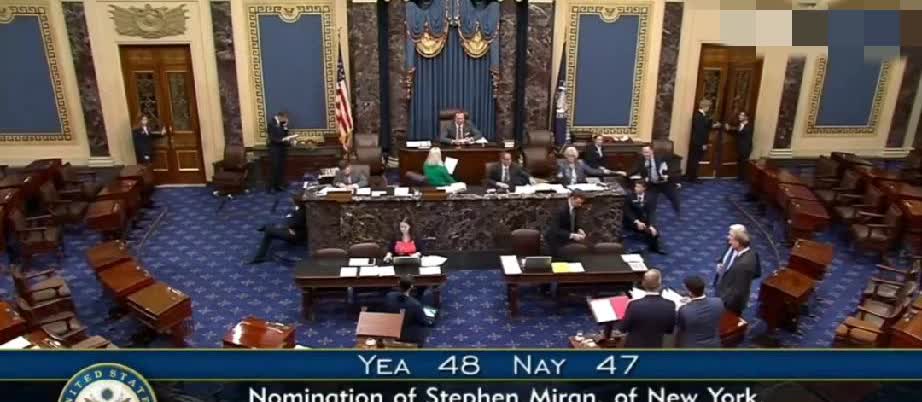 特朗普提名斯蒂芬·米兰为美联储理事,在参议院获得通过,以48票对47票通过。