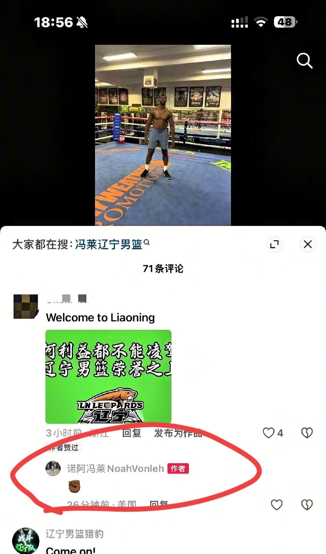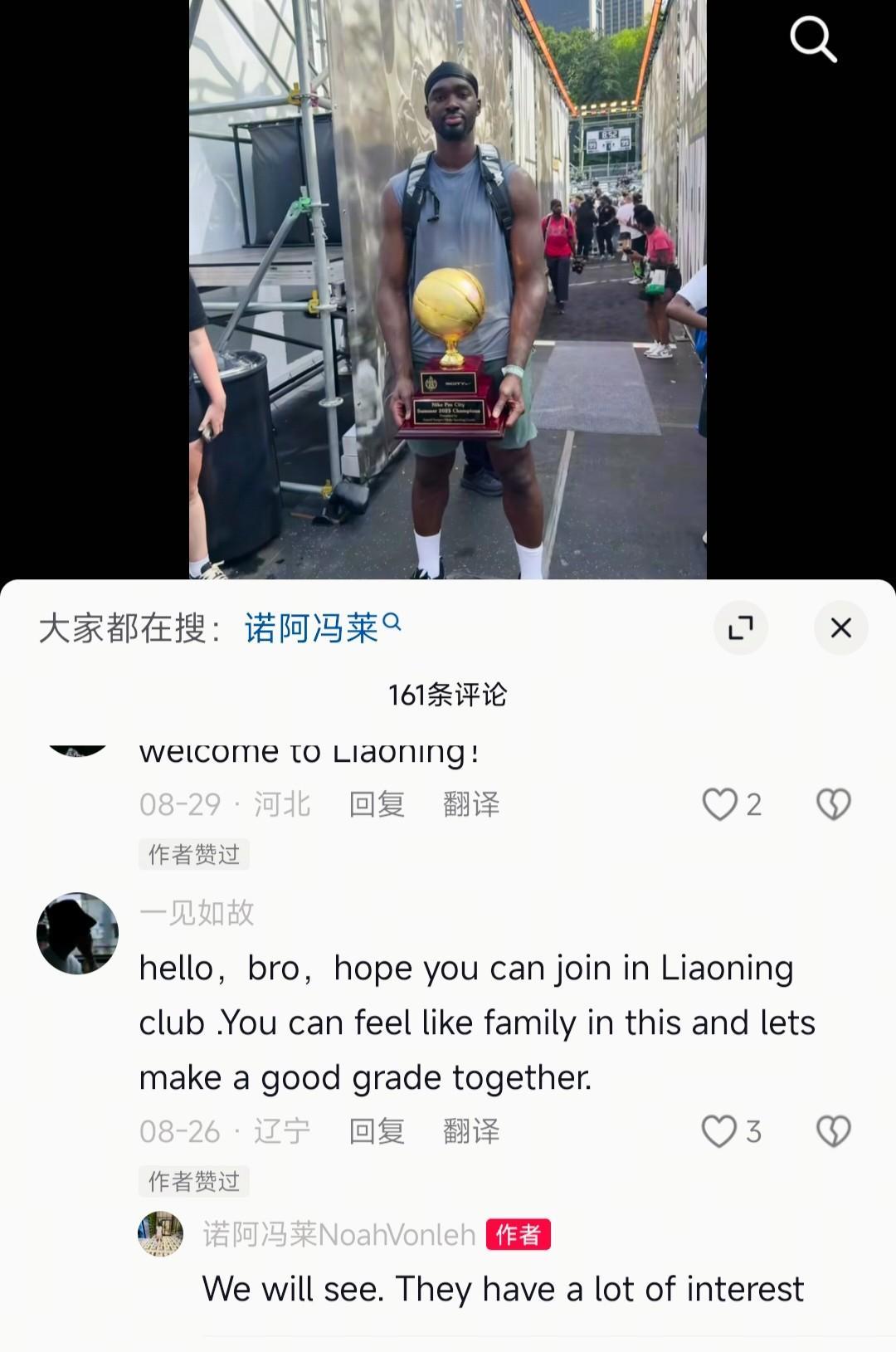 CBA超级外援冯莱持续向辽宁男篮释放善意,前不久曾公开喊话辽篮,近日,再次现身评