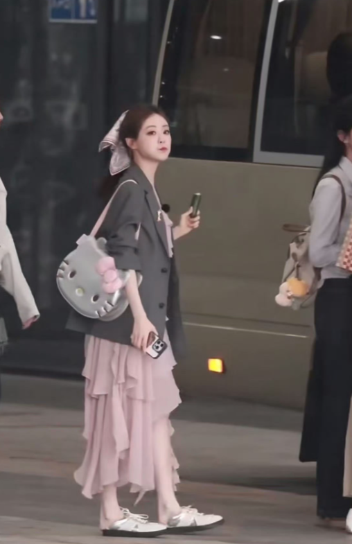 祝绪丹这套早秋穿搭也太好看了吧!灰色配粉色居然这么高级,温柔又显气质,层次感立马
