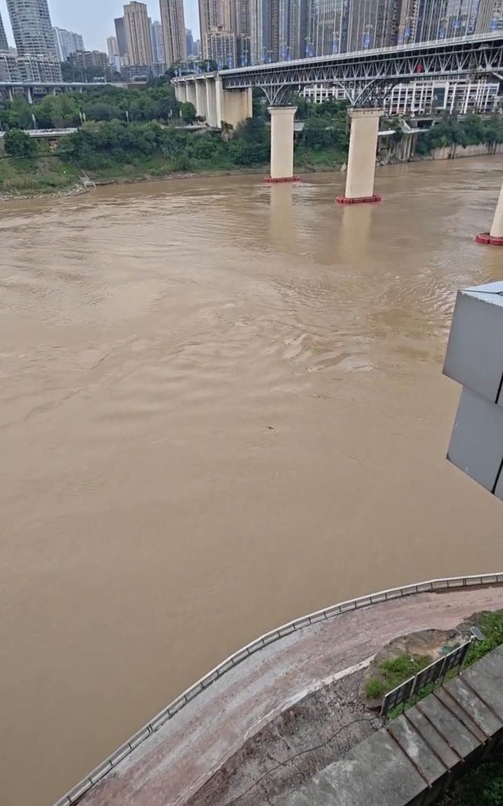 成都四川下雨,重庆嘉陵江涨水了。这么浑的水的人游泳,你看这些重庆人。今天成都大暴