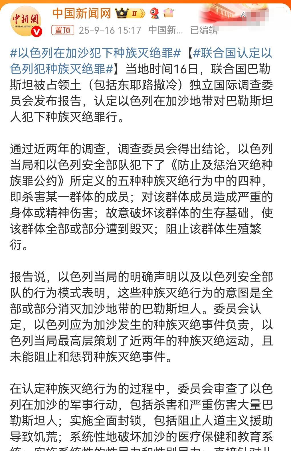 联合国说,经过两年的调查认定以色列犯种族灭绝罪。 我想说还要调查两年才得出结果吗