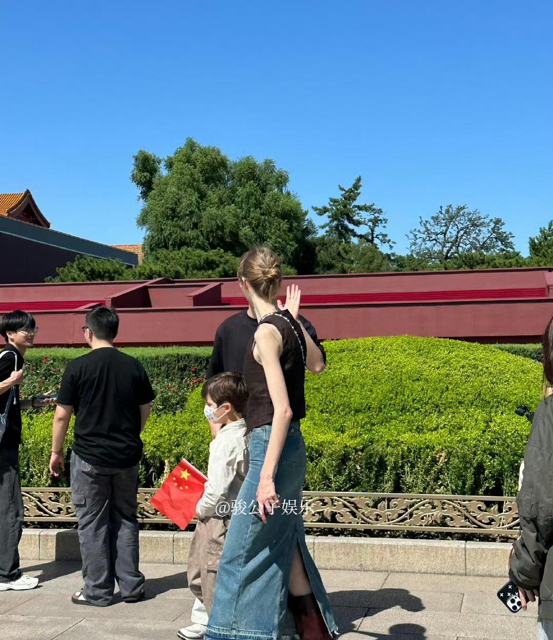董力阿诺一家三口游北京天安门,阿诺气质出众,董力高大帅气,混血儿子很可爱,一家人都是大长腿高颜值,真的好幸福啊!