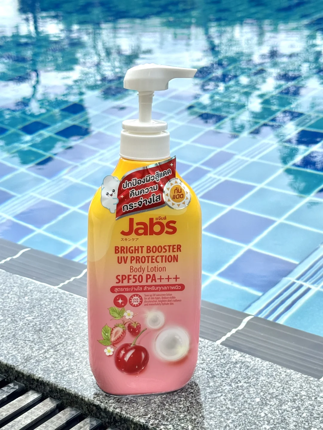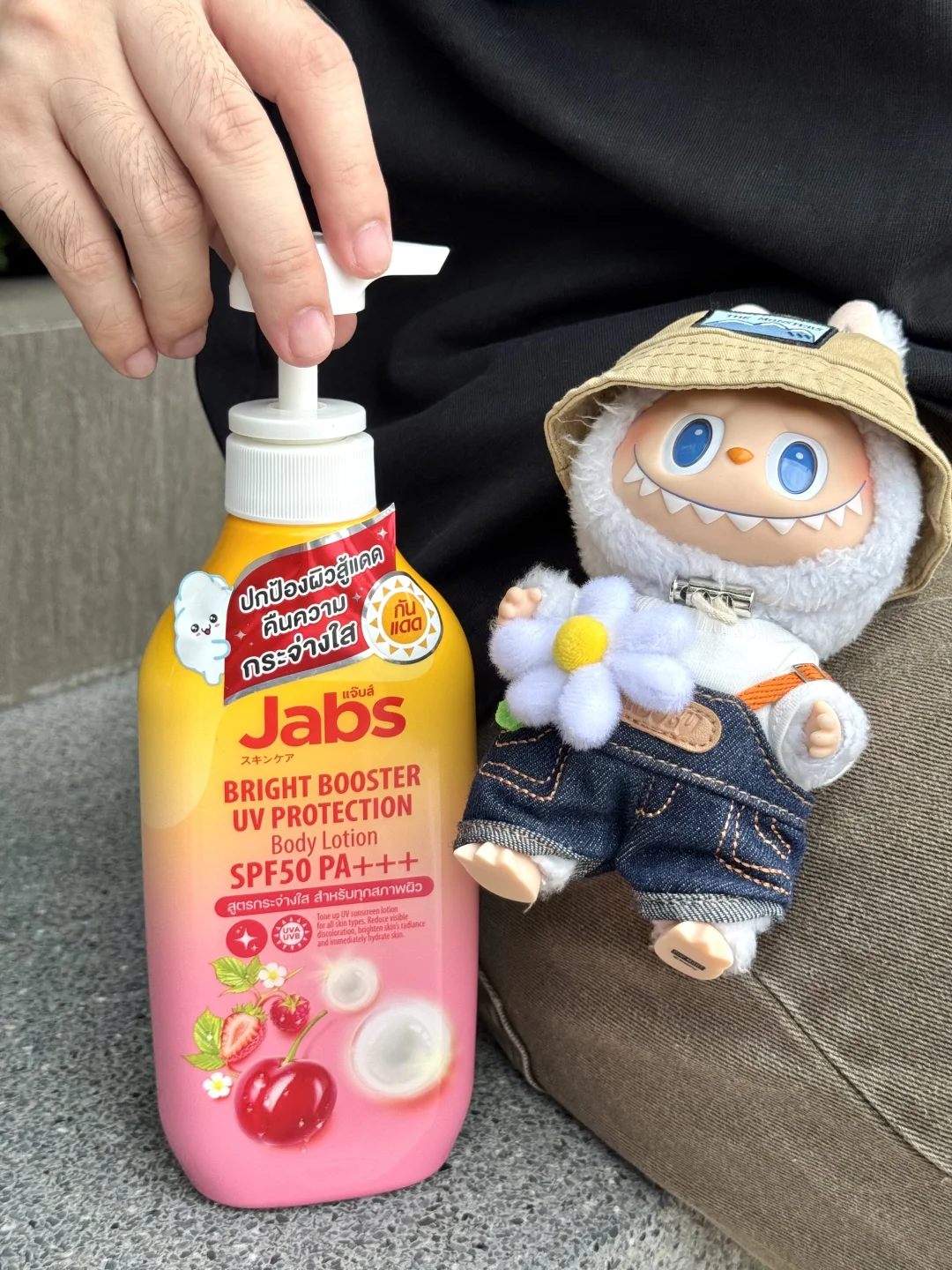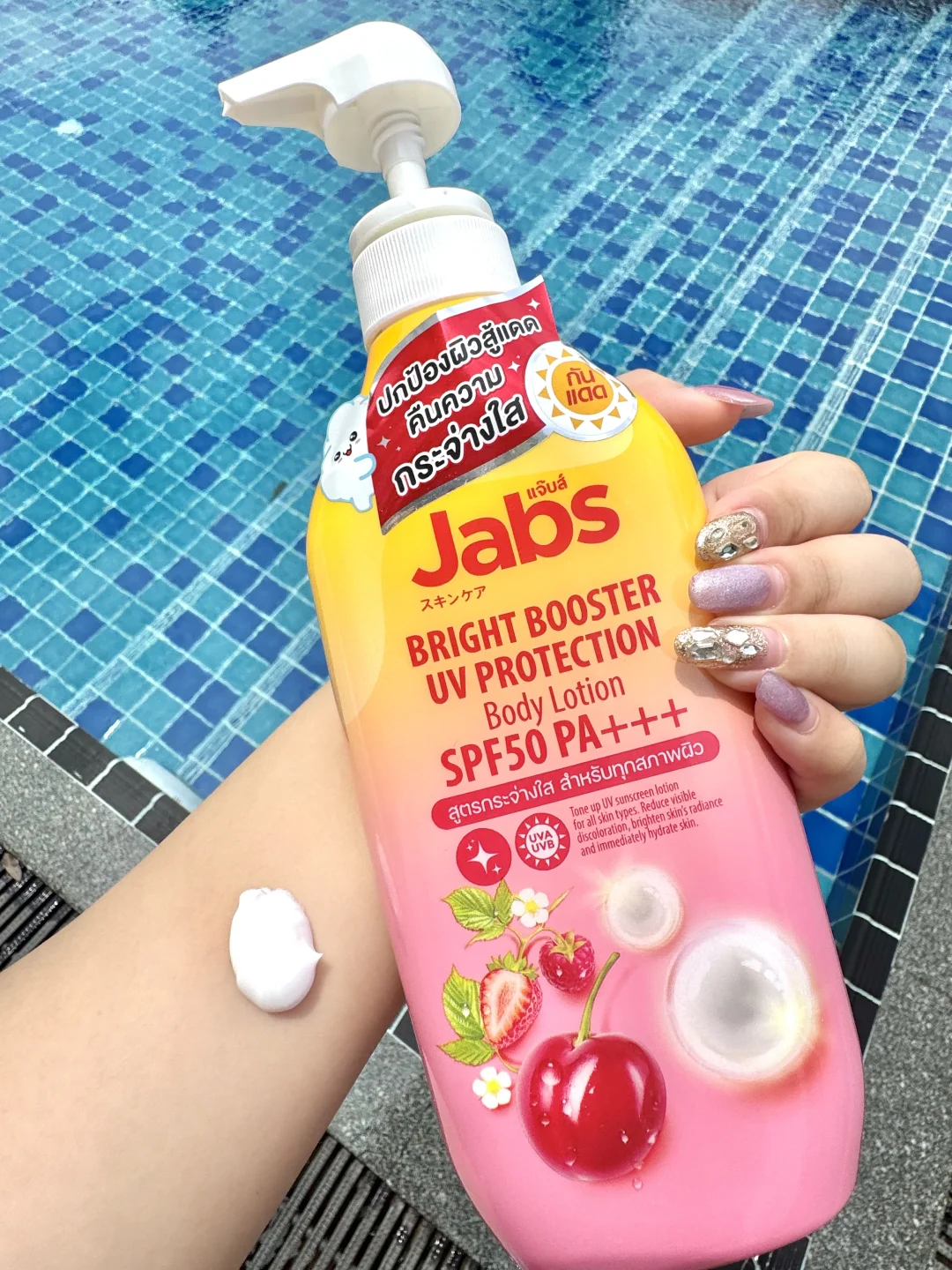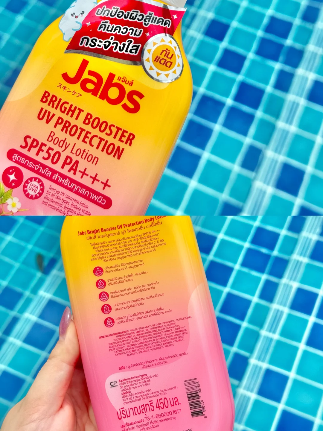 就是🇹🇭Jabs这个防晒身体乳‼️我真的震惊了😱用了一次就爱上了 防晒指数SPF50PA+++‼️不仅保湿滋养肌肤还可以提亮肤色1-2个色阶‼️含有丰富的天然水果萃取物、维生素C、E、B3及熊果素 能够代谢老废角质让肌肤更加焕白透亮‼️而且不假白、不泛灰‼️还能防护 UVA与UVB紫外线伤害🥰每天都可以用哦‼️ 我在海岛🏝️暴晒了一周都没有晒黑‼️超大一瓶性价比真的很高啦‼️来泰国旅游的姐妹在屈臣氏或淘宝就可以找到 千万别错过哦‼️