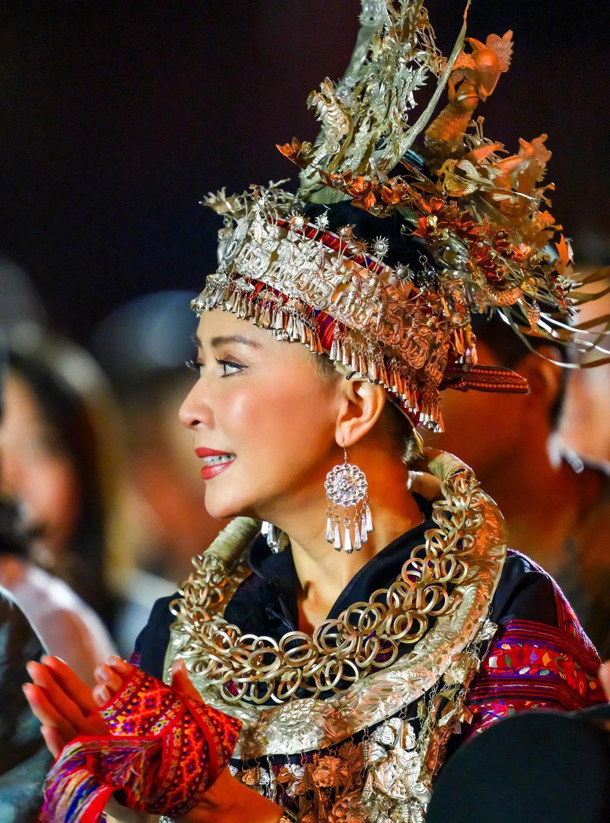 刘嘉玲身穿民族真漂亮!现身貴州的她依旧气质好!#刘嘉玲# #刘嘉玲穿搭争议#