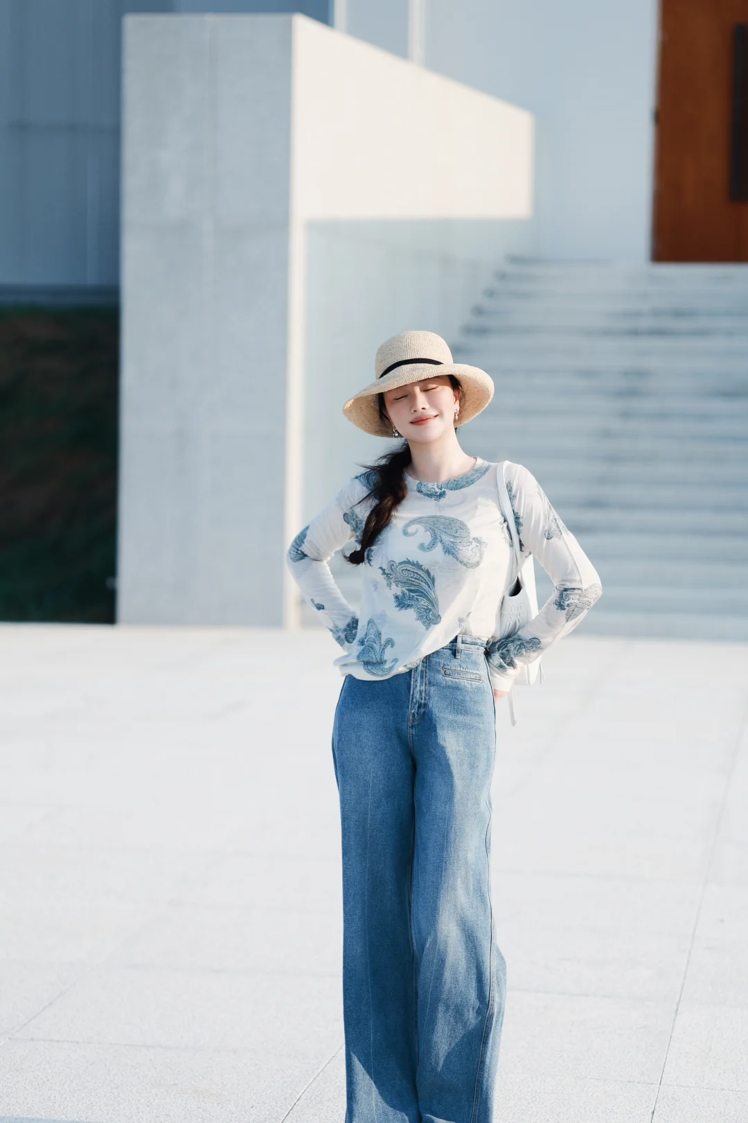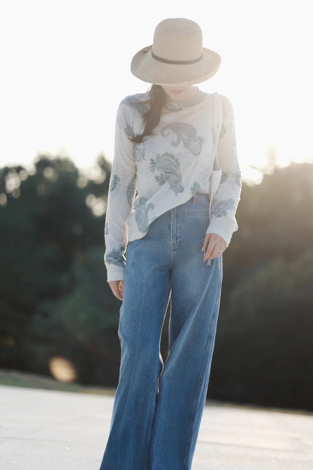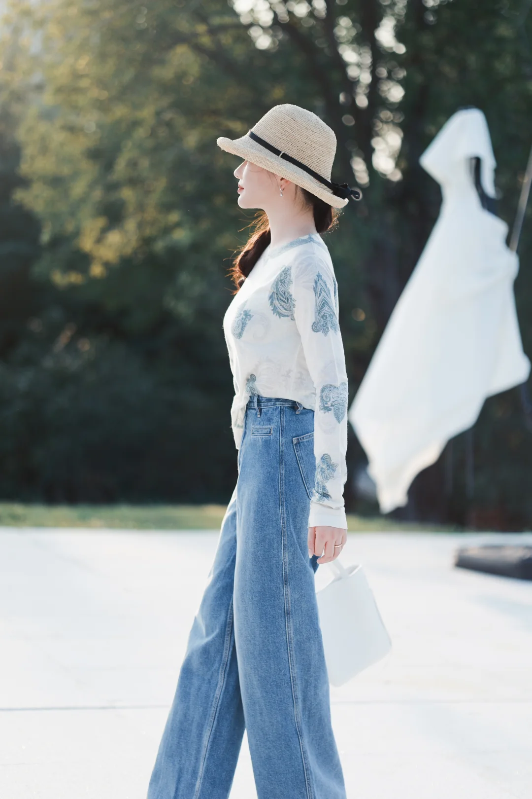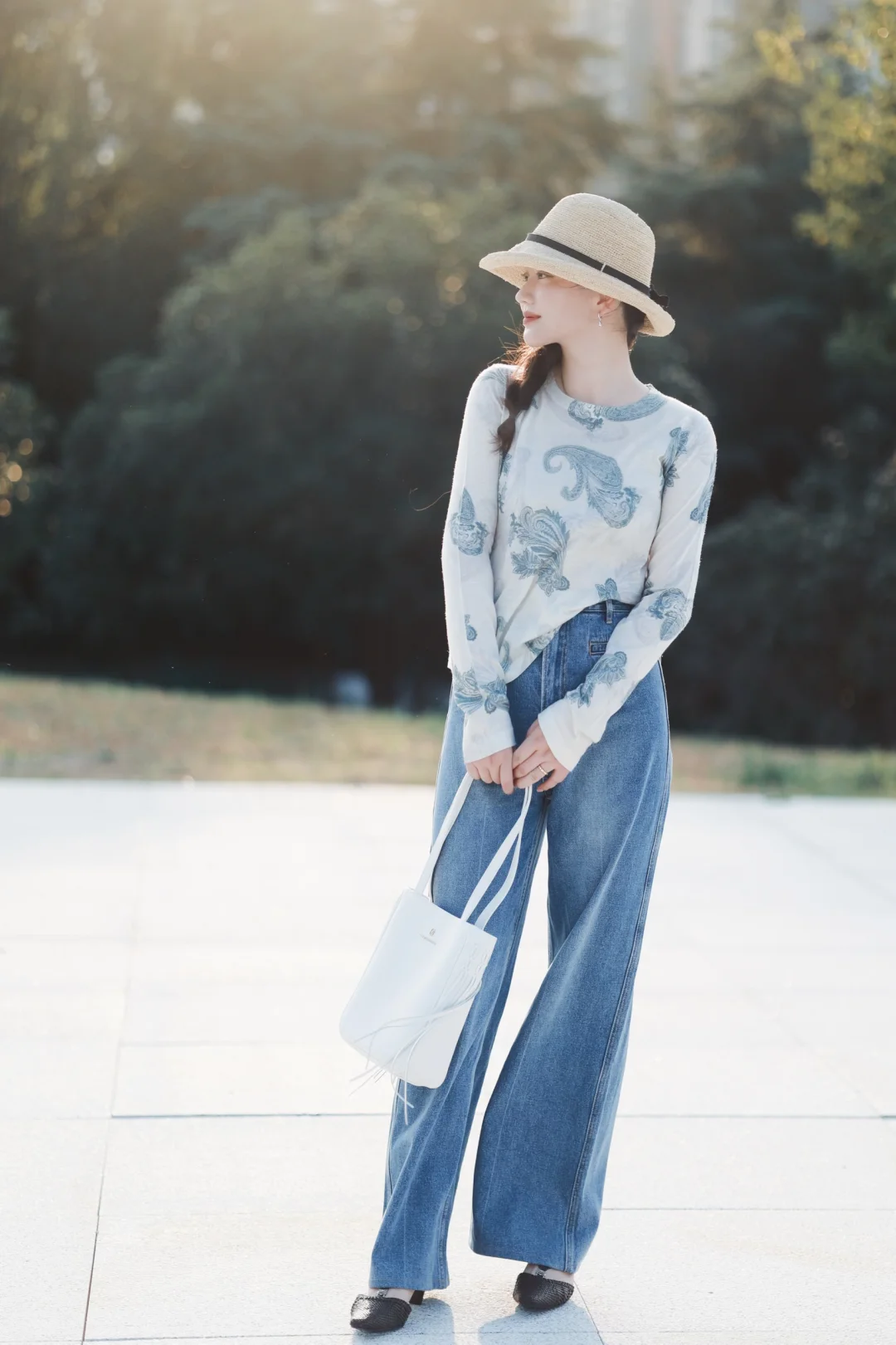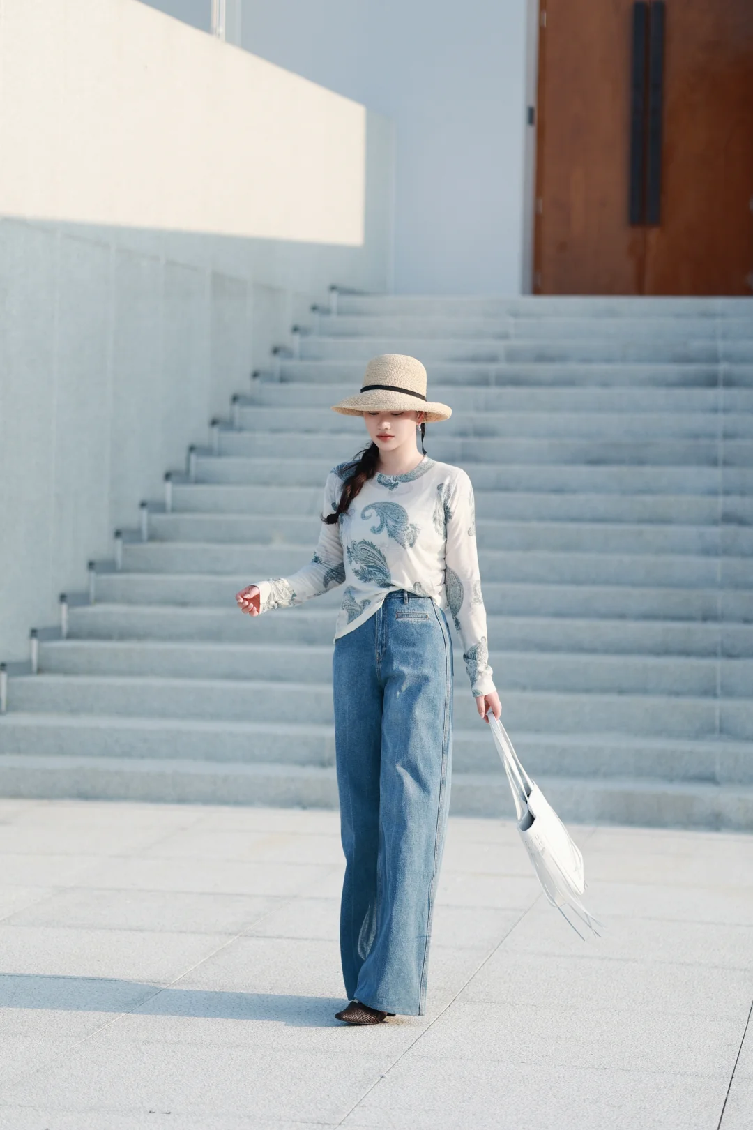夏末早秋,正是惬意时节,在艳阳下走一走,感觉像是将舒畅心情一饮而尽,人自醉在其中。 佩斯利腰果花纹的薄透羊毛衫,颜色与质感之温柔如风如絮,沐于秋光与教堂建筑的些许徜徉,便是最舒然的享受了。