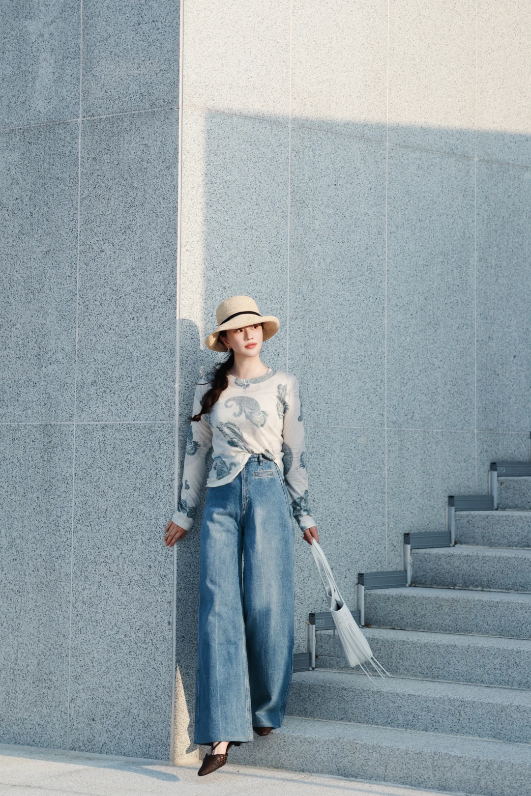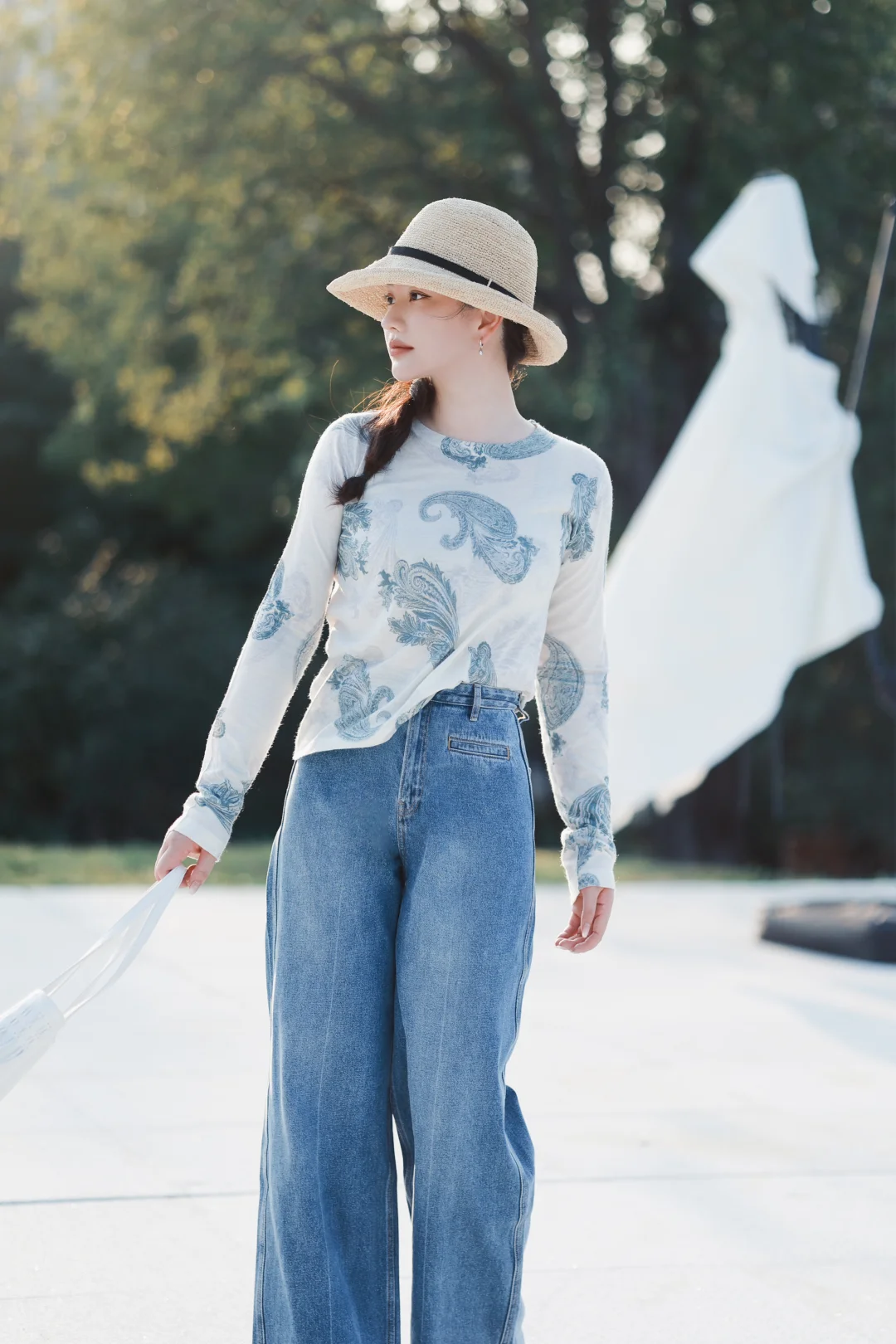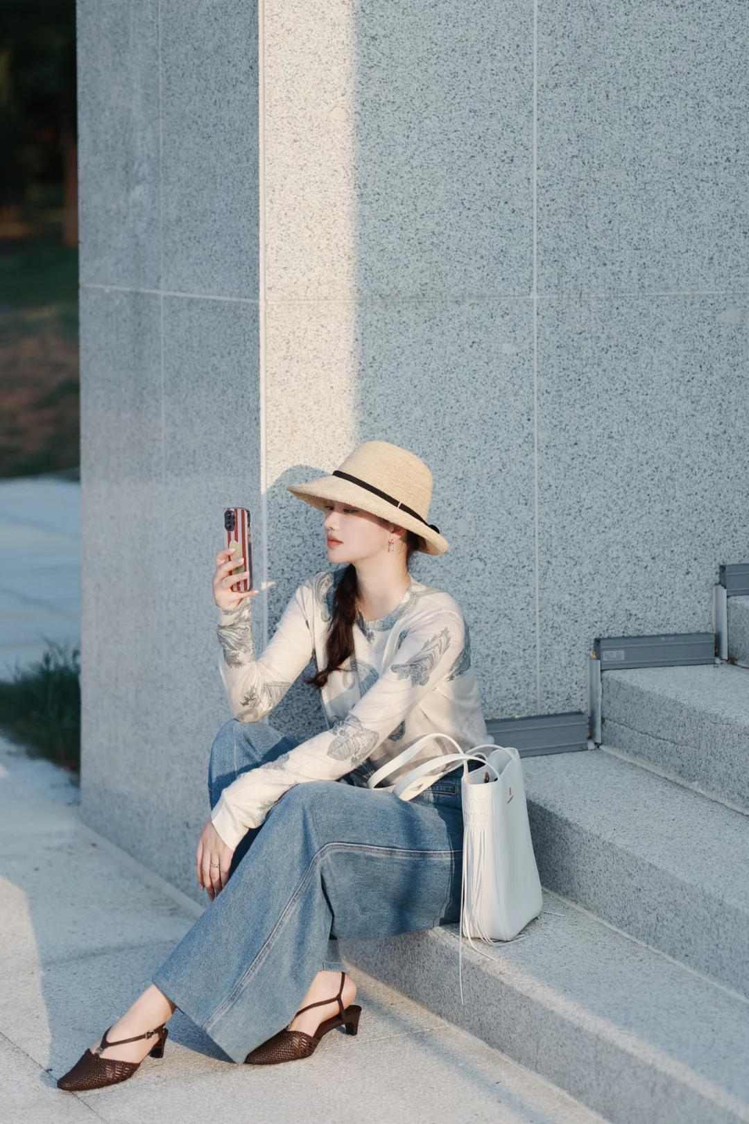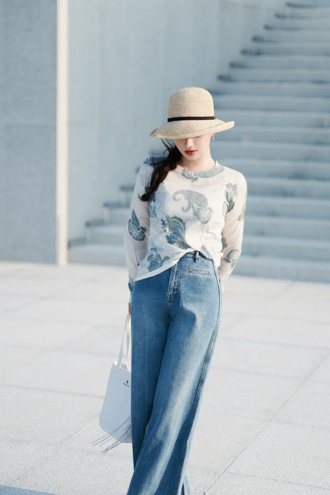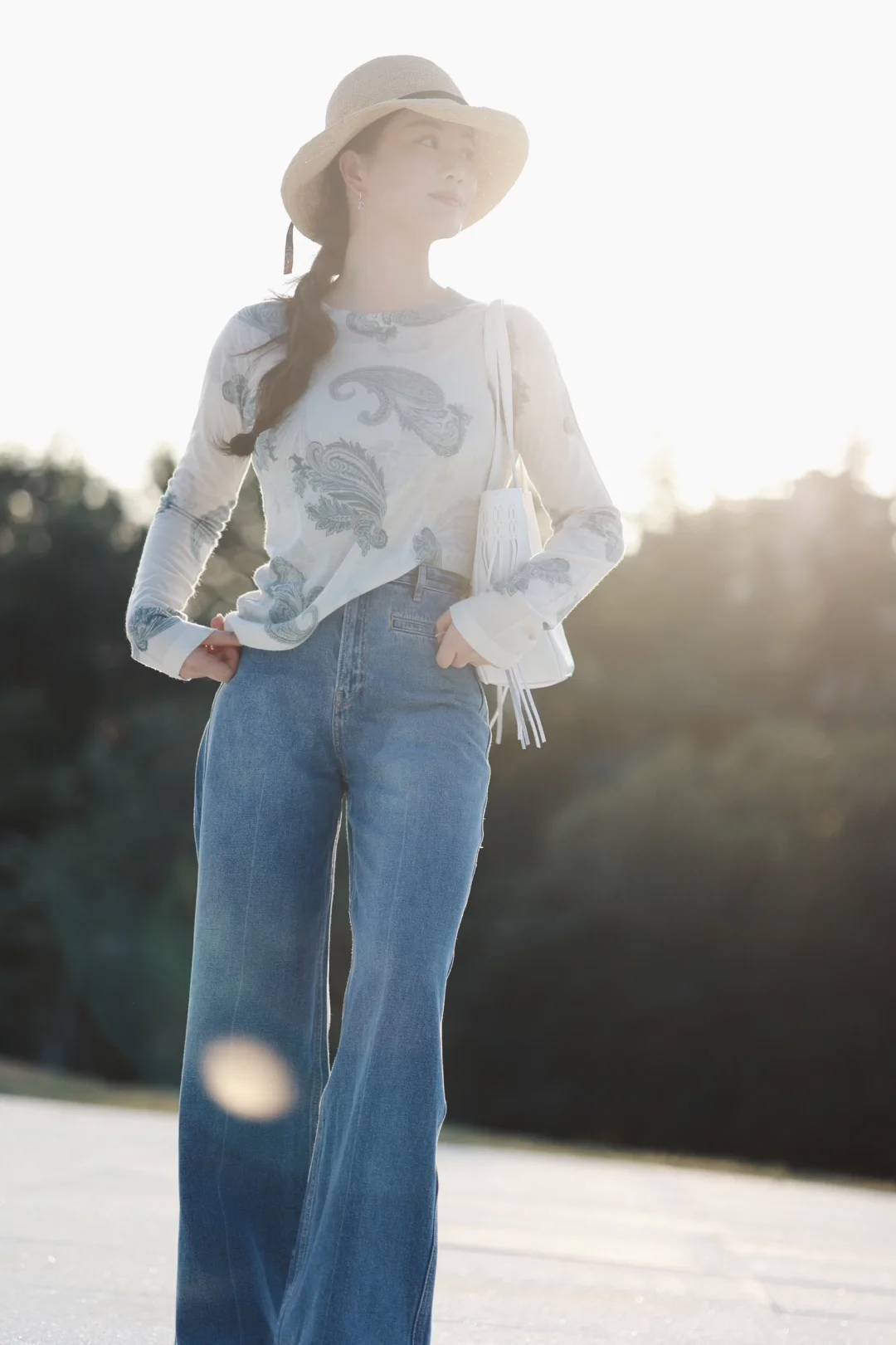 夏末早秋,正是惬意时节,在艳阳下走一走,感觉像是将舒畅心情一饮而尽,人自醉在其中。 佩斯利腰果花纹的薄透羊毛衫,颜色与质感之温柔如风如絮,沐于秋光与教堂建筑的些许徜徉,便是最舒然的享受了。