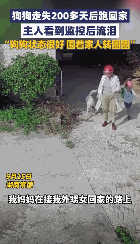 “这就是命啊!”9月15日,湖南常德,一女子接外孙女放学时,竟然在路上遇到了走丢200多天的狗!狗狗认出主人后,跟在摩托车后面一路狂奔,女子试着喊了下名字,没想到狗狗直接就扑了过来。网友:看狗狗的状态应该也没饿着! 现在,很多家庭中都有养狗狗,时间一长,它们就像家人一样陪伴在我们身边,不过在外出过程中,一定要牵好绳子,这不仅是为了别人着想,更保障了狗狗的安全。 今年年初,佘女士家的狗狗不慎走丢了,家人们找了好长一段时间都没有见到,本来大家已经不抱有希望了,没想到,它竟又出现了! 这天下午,佘女士的母亲接外孙女回家,回来的路上,突然看到一条狗,无论颜色还是体型,都和自家走丢的那只极为相似,狗狗也发现了熟悉的身影,跟在摩托车后面一路追了过来,最终来到了家门口。 佘女士的母亲试着叫了一下狗狗的名字,小狗瞬间就冲了过来,看来这就是自家走丢的那只狗! 母亲很快就打给佘女士和亲戚,将这一好信息传播开来。 网友看后表示,这半年多的时间,估计狗狗也在努力找家,或许是被好心人当流浪狗给收养了,又或许是迷路到了隔壁村子,这才一直没有出现。 或许这就是缘分吧,分别了200多天还能一眼认出主人,狗狗果然是人类最忠诚的伙伴。 信息来源:《9月15日湖南常德,狗狗走失200多天后跑回家,主人看到监控后流泪:狗狗状态很好,围着家人转圈圈》大象新闻