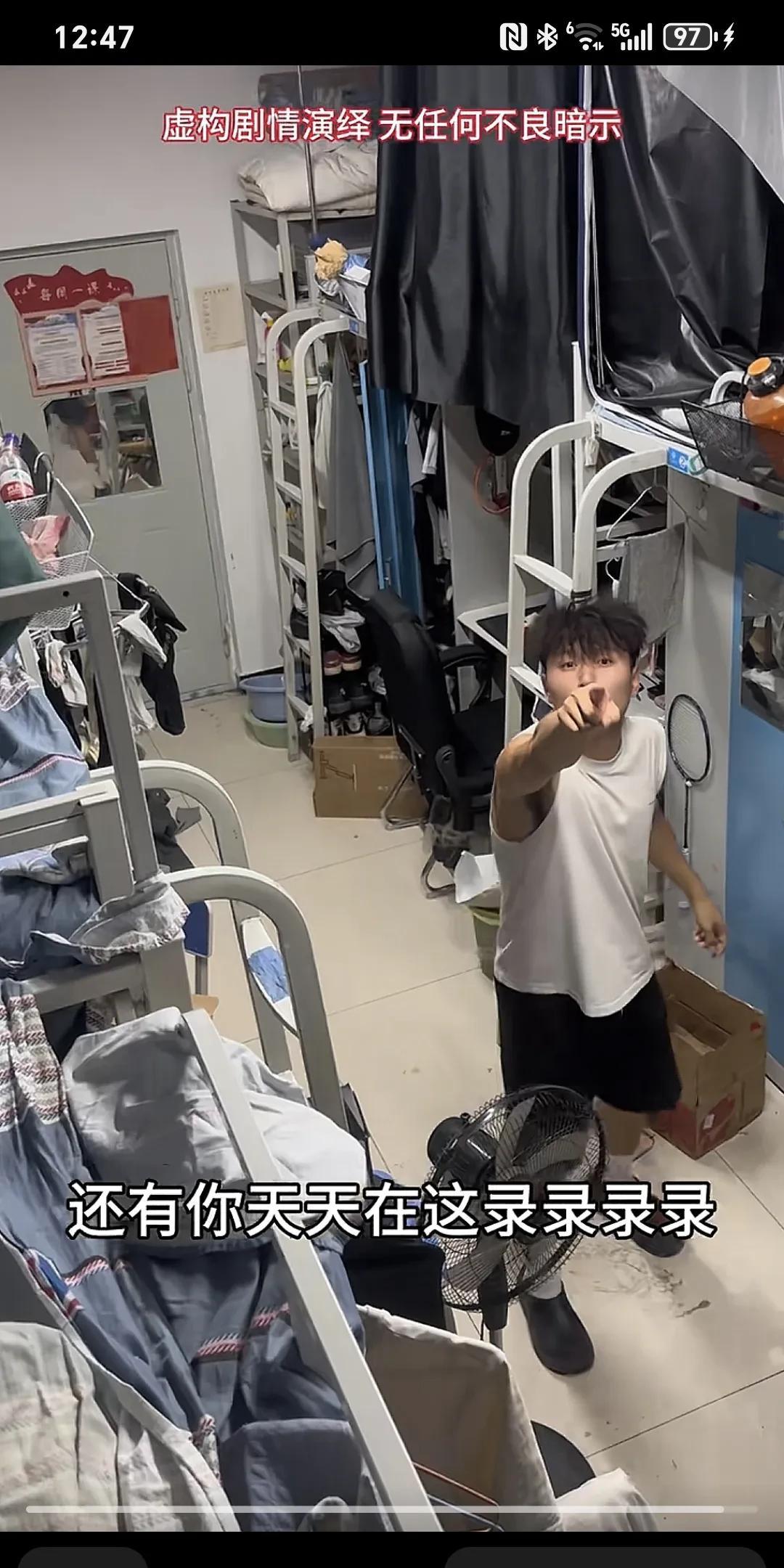 我说两句啊,以后在宿舍不要抽烟,你要抽你就出去抽,别到时候说我脾气不好啊。第二,晚上十一点半断电之后,不要发出声音,该休息了,不要打游戏,不要打电话,你戴上耳机,吵到我休息,我给你翻脸。第三,未经我的允许,不要拿我的东西,我这一提纸才买了两天,就剩一卷了。我不管你们谁拿的啊,拿我的东西要告诉我跟我说一声,别到时候说我翻脸,还有你天天在录录录录以后,不要再偷拍我。 同是室友,都要自觉,全凭良心自觉,互相尊重理解,才能共处,才能和谐!