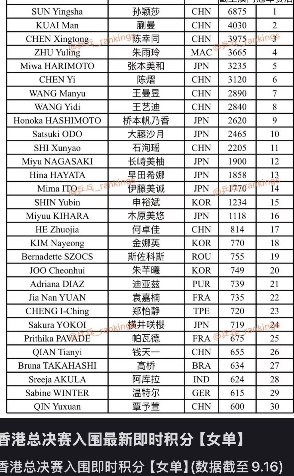 人民日报:孙颖莎王楚钦获香港总决赛参赛资格 9月17日,人民日报报道, 孙颖莎