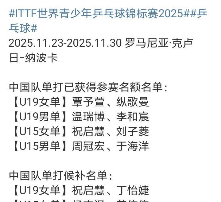 覃予萱和纵歌曼,你看好谁能夺冠? #秋日生活打卡记# 今年的世青赛在11月又将开打,国乒女队再次派出覃予萱与纵歌曼去争夺U19女单冠军。 去年的女单冠军争夺中,覃予萱止步不敌汉娜.高达,止步女单八强。 而纵歌曼一路闯进决赛,但决赛不敌德国的考夫曼,拿到亚军。 2024年,国乒女队U19,女单丢冠。 但U15女单冠军仍然是国乒是姚睿轩获得。 据有关资料介绍,最近几年世青赛女单冠军中,17年是孙颖莎,18年是钱天一,21年是蒯曼,战胜木原美悠,且蒯曼是当年的三冠王,但在23年,木原美悠称王,蒯曼获得季军,2023年,蒯曼再次夺冠,2024年是德国考夫曼夺冠。 条友们,今年覃予萱与纵歌曼再出发。 大家觉得,覃予萱与纵歌曼谁能拿到今年的世青赛女单冠军?