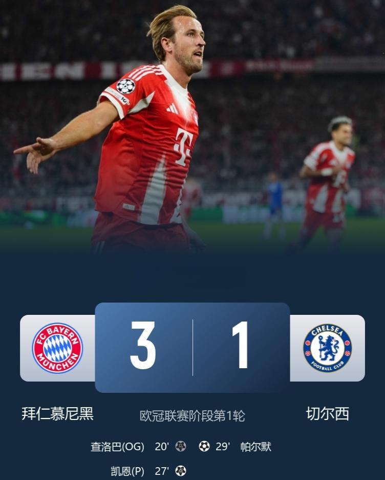 拜仁在本轮欧冠3-1力克切尔西,英格兰中锋凯恩当选全场最佳并晒出自拍照,他也在赛