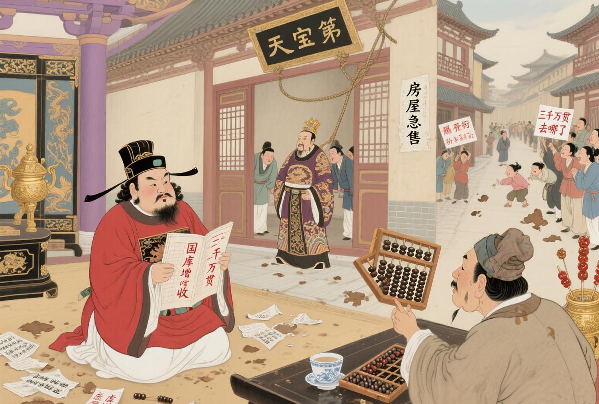 杨国忠虚报三千万贯!账对不上,卖豪宅还债遭笑 唐朝又出 “吹牛翻车” 名场面!杨国忠为讨好玄宗,拍胸脯说 “今年财政收入三千万贯”,结果查账时账本漏洞百出,钱根本对不上。玄宗脸一沉:“你说的钱呢?缺口自己补上!” 吓得杨国忠只能卖掉宰相府还债,还嘴硬 “这是为国家奉献”,百姓直接编顺口溜调侃 “宰相吹牛皮,豪宅变废墟”,笑料拉满! 杨国忠靠杨贵妃的关系当上宰相后,总想搞点 “政绩” 邀功。年底核算财政时,他明知国库没那么多钱,却故意虚报数字,在玄宗面前大吹特吹:“陛下圣明,今年国泰民安,财政收入突破三千万贯,创下新高!” 玄宗听了龙颜大悦,当场赏了他不少金银珠宝。 可没高兴几天,负责查账的官员就慌慌张张来报:“陛下,账本对不上!杨国忠说的三千万贯,实际差了八百万贯,钱不知去向!” 玄宗当即召来杨国忠质问,把账本扔到他面前:“你不是说收入三千万贯吗?这缺口怎么回事?朕要的钱在哪?” 杨国忠吓得腿都软了,支支吾吾说不出话。玄宗怒气难消,下旨让他 “自己把八百万贯缺口补上,不然就治你欺君之罪”。杨国忠没办法,只能咬牙卖掉自己豪华的宰相府,连府里的奇珍异宝也一并变卖,才凑够钱填上缺口。 事后有人问他心疼不心疼,他还装模作样说:“为国家分忧,奉献点家产算什么?只要陛下满意就好。” 可这话传到百姓耳朵里,大家都笑掉了大牙,街头巷尾全是调侃的声音:“杨国忠,吹大牛,说有三千万贯收入,查账发现是假的,皇帝让他补缺口,卖掉豪宅还了债,还说‘为国家奉献’,真是脸皮厚!” 更有人编了顺口溜:“宰相吹牛皮,财政报假数,账对不上慌了神,皇帝下令补缺口,豪宅卖掉变废墟,百姓笑他‘没本事,只会吹’!” 杨国忠本想靠虚报政绩博好感,结果偷鸡不成蚀把米,不仅丢了豪宅,还落得个 “吹牛宰相” 的名声。这事儿也成了唐朝的笑谈,提醒后人:靠说谎邀功终究会翻车,再大的官,也经不住 “吹牛不打草稿” 的折腾!