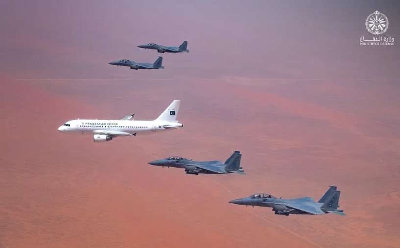 巴基斯坦这打出来的地位真不一般 沙特起飞四架战斗机护送谢里夫专机 从进入沙特领空一直到降落利雅得机场 随后双方签署了历史性的共同防御条约 任何一方受到攻击,都将被视为对双方的攻击!