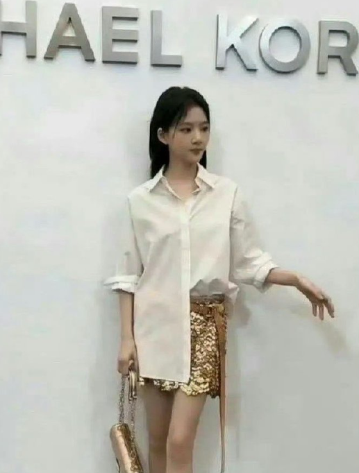 任敏简单白衬衫搭配金色亮片短裙很有气质!