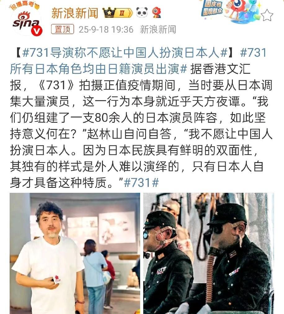 电影《731》导演赵林山两个举动让人肃然起敬! 1、他为了真实的让大家看到日本在中国做人体实验时,有多么的丧心病狂,对婴儿都不放过的残忍一幕,居然把自己刚出生十几天的女儿请来拍摄,让女儿成为电影里面被解剖出来的婴儿。 刚出生十几天的婴儿身体各方面都十分的脆弱,一般父母都是小心呵护的,而拍戏的地方充满了各种细菌,人也很多,很嘈杂,孩子很容易被吓哭,但赵林山为了电影足够真实,居然让女儿参演,这份对历史的尊重和对电影的极致追求,让人不得不佩服! 2、赵林山拍摄《731》的时候,正值特殊时期,拍摄本就很困难,但他却坚持从日本找了80个日本演员来演电影里的日本人,因为他说他不愿意中国人扮演日本人,日本人独有的特质外人难以掩饰,只有日本人自身才具备这种特质! 要么说还得是文化人会说话呢,赵林山这番话真就是骂人不带脏字,想表达的意思很简单,那就是中国人就算演,也演不出日本人的丧心病狂,没有人性,而且他敢在采访中说出来,真的让人肃然起敬,是个有血性的爷们儿! 而赵林山花费这么多心血,就为了让大家铭记历史,不忘国耻,愿与诸君共勉!