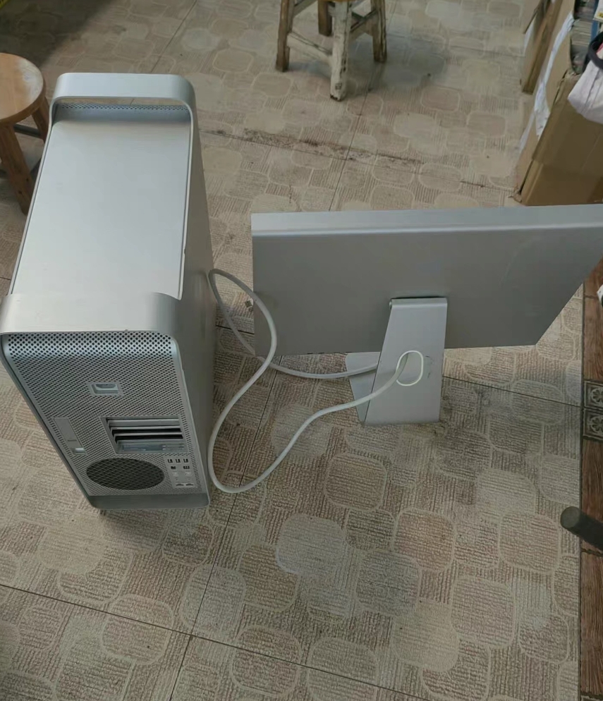 100块钱收了一套苹果的台式电脑,铝合金的外壳,看起来蛮精致的,感觉特别的有档次。 闲置群里看到有人发了这套苹果的台式电脑,卖家说不能开机了,看起来还不错,离我住的地方也不是很远,于是就开车过去了,到地试了一下显示器是好的,就是电脑主机按开关没反应了,最后砍价到100块钱收了回来。 打算到时候把Windows的电脑配件装进去,不知道可不可以,有没有大神玩过的?