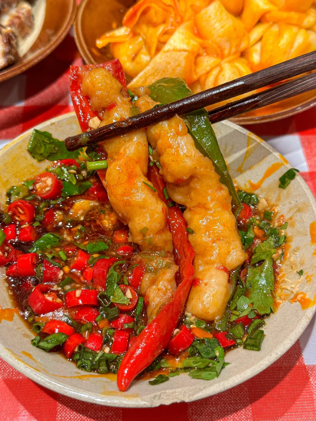 双椒虾滑:爱吃辣的一定要试试,吃起来嫩滑q弹,口口鲜辣🌶️!