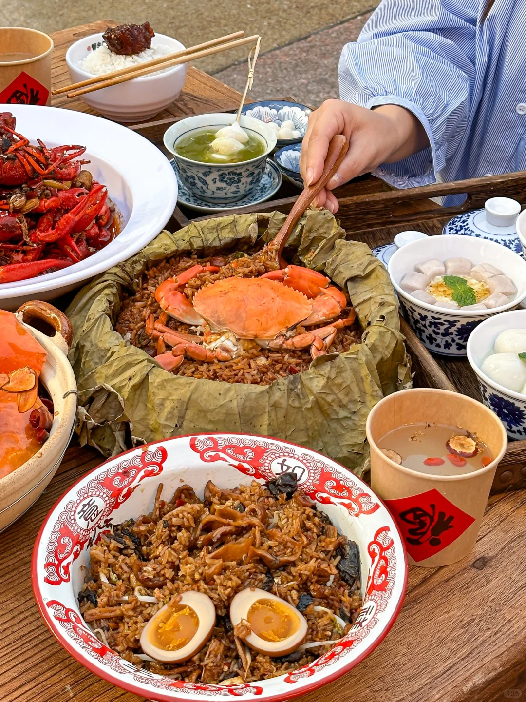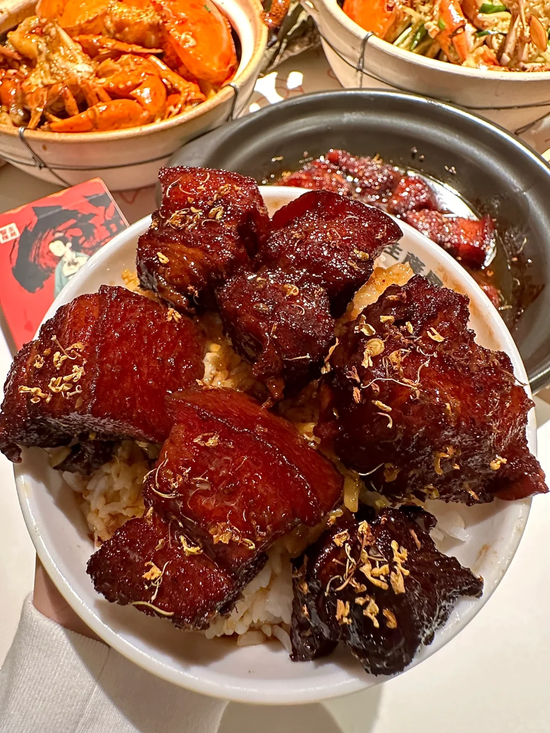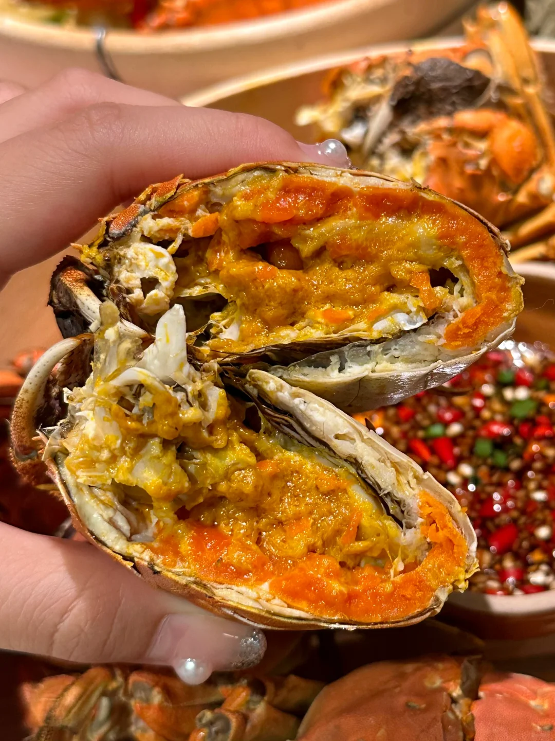强推这个姜葱焗肉蟹煲!吃得出的食材新鲜 油香又不腻!汤汁吸进蟹肉里真的巨巨入味好好吃!炒饭:肥肠都是超大块的谁懂?!一口下去太扎实了…桂花红烧肉,勾芡浓稠肥而不腻,没想到虾蟹馆的大菜也这么能打!..