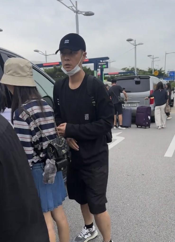 网友在首尔偶遇孙骁骁任重一家三口,孙骁骁穿着百褶裙,状态好少女,两岁女儿被保姆抱