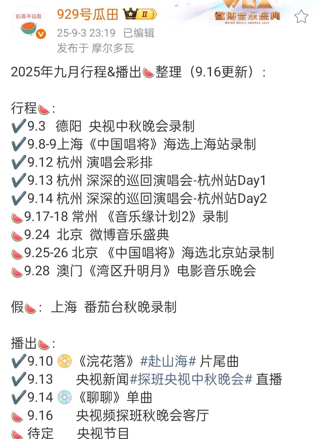 周深录制《音乐缘计划2》下班! 昨天也是录制到凌晨一点多才下班的! 9月份就一站演唱会,接下去都是节目录制和各种晚会,这行程也是安排的满满当当啊! #周深#