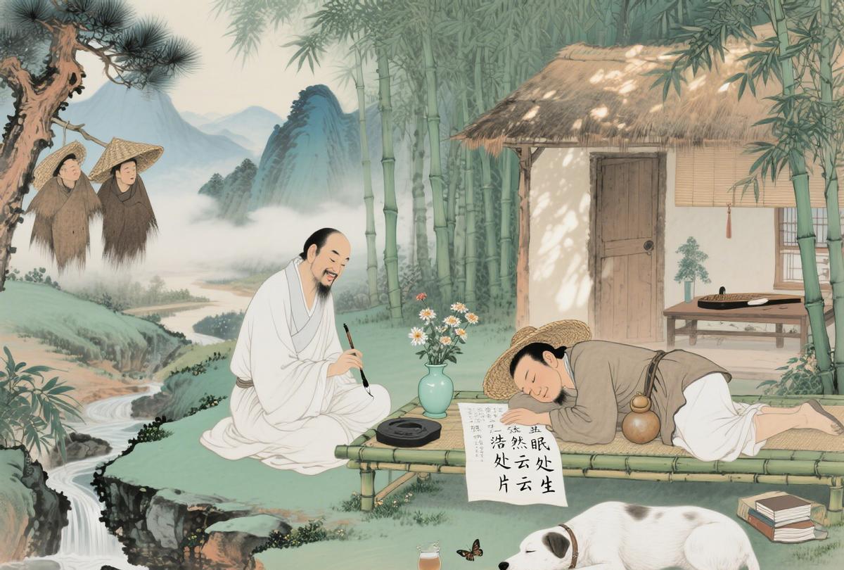 王维孟浩然 “佛系” 友情:山间静坐眠,诗记睡相显悠然 盛唐的山水间,藏着王维与孟浩然最惬意的友情。两人皆怀 “佛系” 心态,不喜官场纷扰,偏爱与青山绿水为伴 —— 王维有 “明月松间照,清泉石上流” 的禅意,孟浩然有 “春眠不觉晓,处处闻啼鸟” 的悠然,他们常相约遁入山林,不刻意谈诗论道,只静静享受自然,连偶然的小插曲,都透着几分随性的趣味。 那年初夏,王维邀孟浩然到终南山的辋川别业小住。清晨的山林薄雾未散,松涛阵阵,清泉潺潺,两人提着竹篮,沿着蜿蜒的山路走到一处青石平台。平台旁有棵老松树,树荫如盖,王维铺好随身携带的粗布垫,笑着说:“浩然,此处视野开阔,又临清泉,今日便在此静坐片刻。” 孟浩然点头应允,与王维相对而坐,闭上眼睛,任山间的清风拂过面颊,听着鸟鸣与泉声交织,一时竟忘了时光流转。 阳光渐渐升高,薄雾散去,林间的光影斑驳落在两人身上。王维昨夜为画一幅《辋川图》熬了半宿,此刻伴着松涛声,竟不知不觉靠在松树上睡着了。他眉头舒展,嘴角微扬,双手轻轻搭在膝上,连呼吸都变得平缓,仿佛与身后的松树、身前的清泉融为了一体。 一旁的孟浩然先醒过来,转头见王维睡得安稳,眼中满是笑意。他没有叫醒好友,反而从竹篮里取出纸笔 —— 这是两人习惯带在身边的,偶有灵感便随手记录。孟浩然提笔蘸了墨,目光落在王维的睡相上,又扫过周围的松石清泉,片刻间便写下一首短诗:“松荫覆石台,泉声绕耳来。摩诘酣然卧,清风入襟怀。” 诗里没有华丽辞藻,只如实记下眼前的景象,连王维熟睡的模样,都藏在 “酣然卧” 三字里,质朴又生动。 不知过了多久,王维被一阵清脆的鸟鸣惊醒。他揉了揉眼睛,见孟浩然正对着一张纸笑,便凑过去看:“浩然,你写了什么?” 待看清诗里的 “摩诘酣然卧”,王维忍不住笑出声,指着诗句调侃:“好你个孟浩然!我不过睡了一觉,你竟把我的睡相都写进诗里了,连‘酣然’二字都用上,是嫌我睡得太沉吗?” 孟浩然收起纸笔,笑着回应:“你睡着时与这山林相映,比醒着时更有禅意,不记下来可惜了。再说,你这睡相平和,哪是‘沉’,分明是‘自在’。” 王维听了,也认同地点头:“倒也是,在这山间睡觉,连梦都是清的。” 说罢,两人并肩坐在青石上,就着清泉喝了几口带来的凉茶,聊起刚才睡着时隐约听到的泉声,没有争执,没有刻意评价,只随意闲谈,笑声混着泉声,在山林间轻轻回荡。 后来,孟浩然把这首诗抄录下来,送给王维作纪念。王维将诗稿夹在自己的画稿里,每次翻看《辋川图》,看到那处画着松石清泉的角落,便会想起那日山间的静坐与酣眠。有人问他们:“你们常在一起,为何不多些诗酒唱和?” 王维笑着回答:“与浩然相处,静坐亦如谈诗,睡梦中的光景,比刻意写的诗句更珍贵。” 这份 “佛系” 的友情,没有轰轰烈烈的典故,却藏在每一个随性的瞬间里 —— 是山间的静坐,是熟睡时的记录,是醒来后的调侃,更是彼此懂得:最好的陪伴,不必刻意经营,只需像山林里的清风与清泉,自然相处,便已足够。