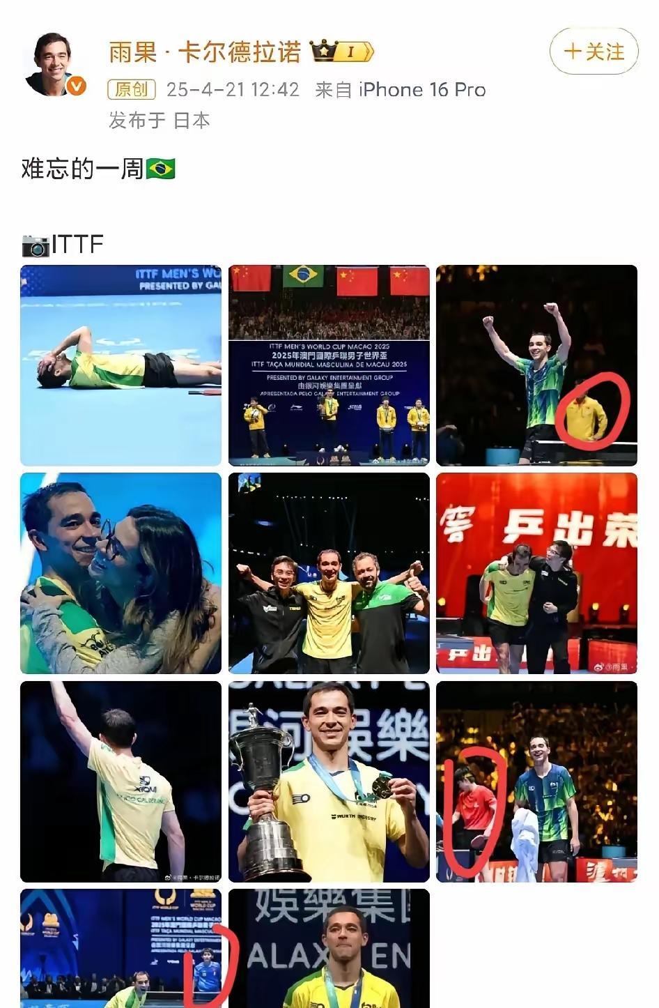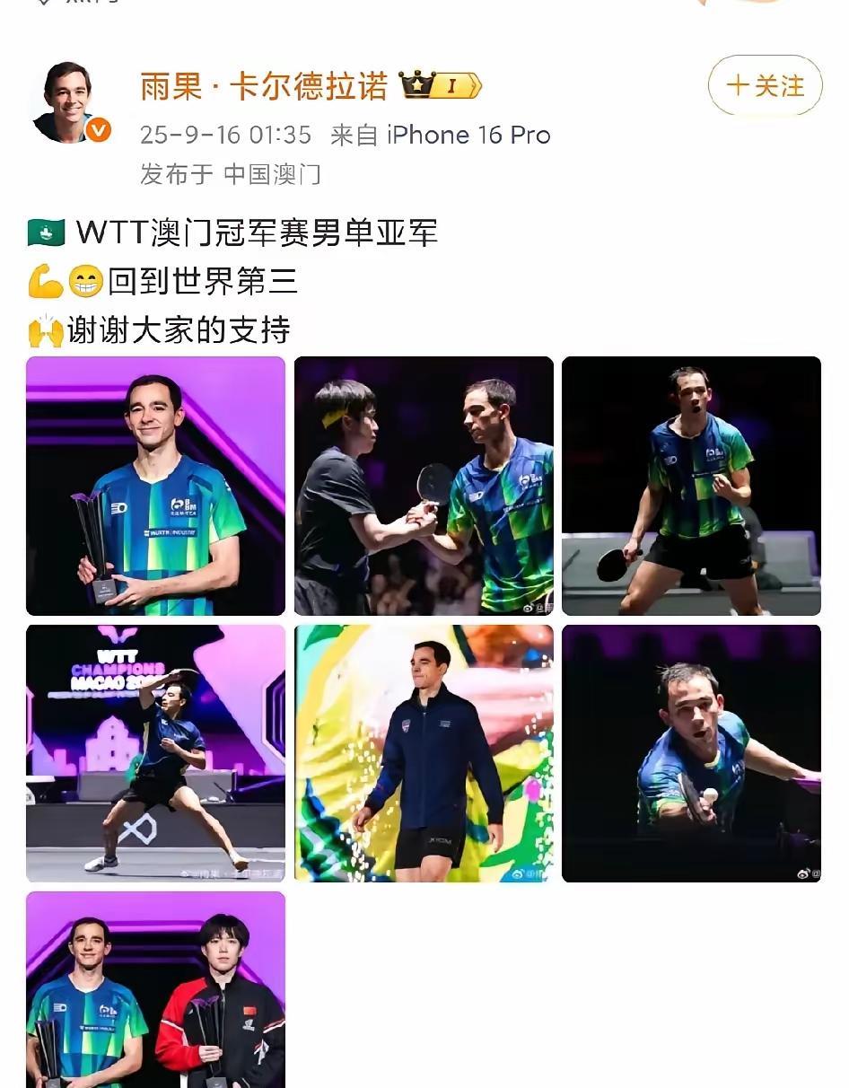 从雨果的三次发文配图看出了啥?这是被王楚钦打服了吗? 4月的澳门世界杯夺冠雨果的