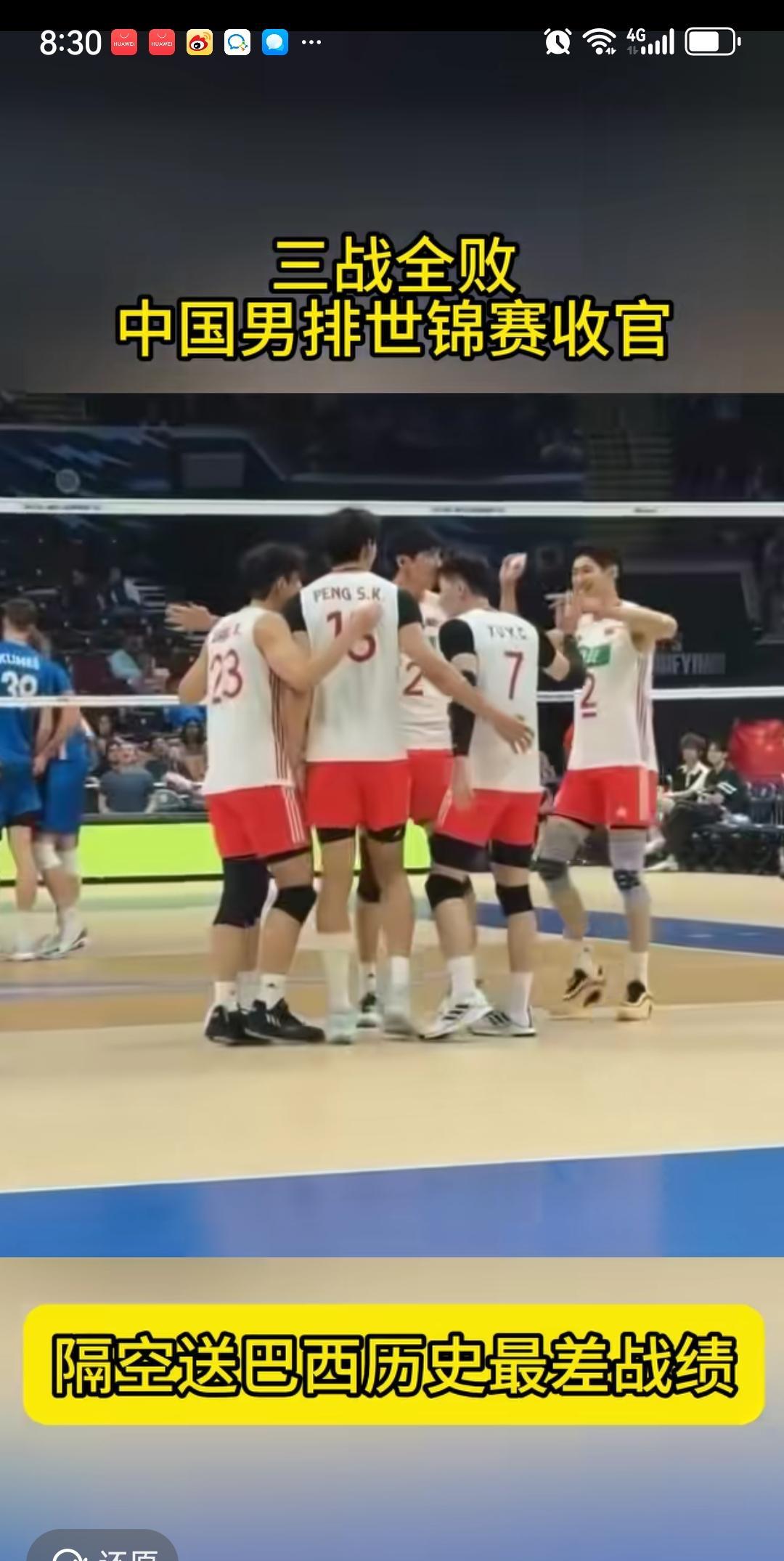 男排世锦赛中国队小组赛三连败,无缘16强。第1场1:3负于巴西。第2场0:3负于