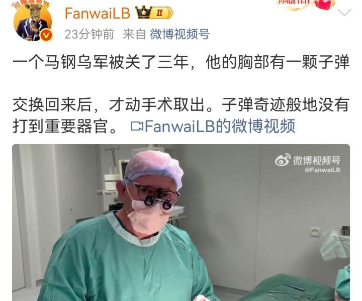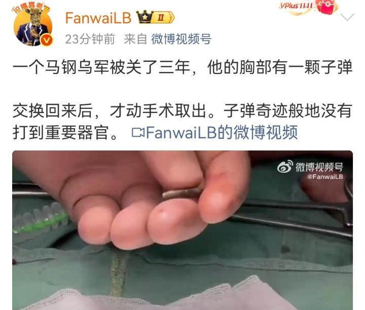 大难不死,必有后福。一个乌克兰战俘,被俄罗斯关押三年后交换回乌克兰,医生从他胸部取出了三年前的子弹,真是奇迹。