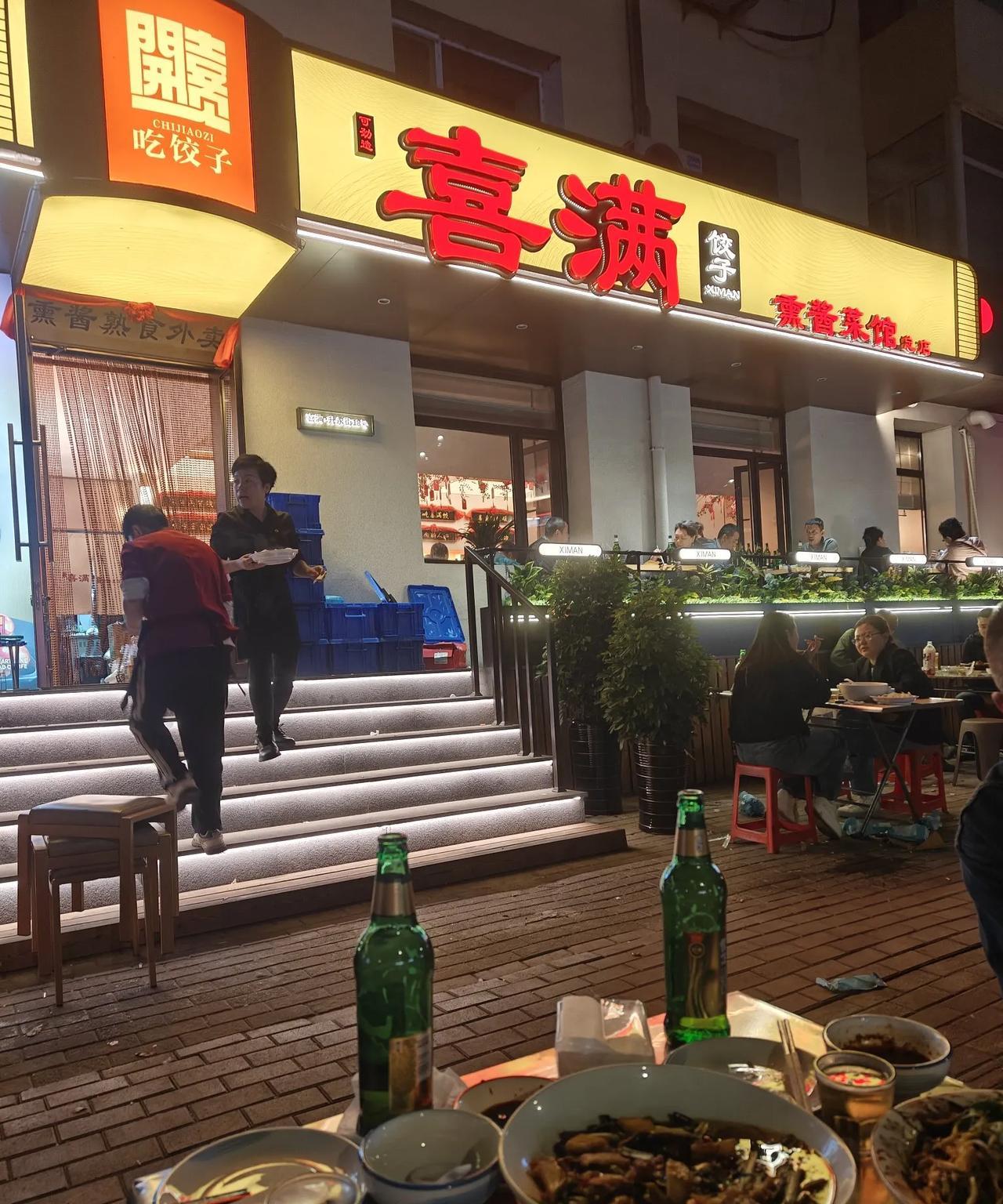 这家位于香坊升永街上的饺子馆,是真火啊,老战友喜春下午两点半就到了,屋里没有地方,在外面一溜阳台下,找了张桌子,他先到的。 不大一会战友小忠到了 ,喜春进去点菜,我嘱咐来清淡的。 昨天晚上喝多了,吃什么也没有胃口,但是也没少吃。 我是走着回去的,不远,过了红旗大街就是香坊大街,走了有20多分钟到了。当散步了。