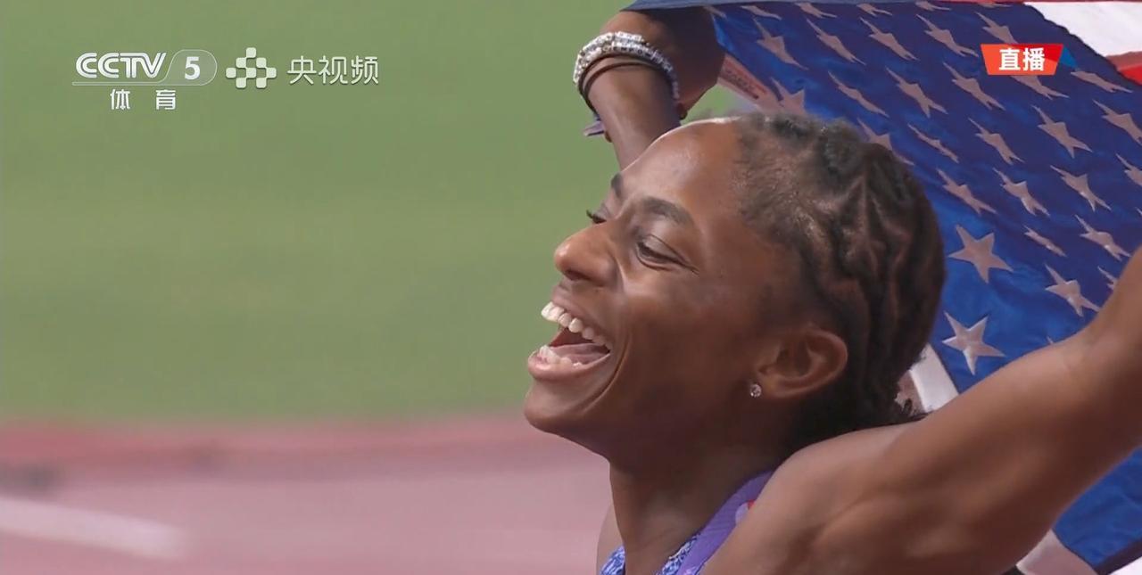 伍登的200米最后冲刺时,眼睛鼓出来,好像体内有一股神奇的力量压迫住她,模样怪吓
