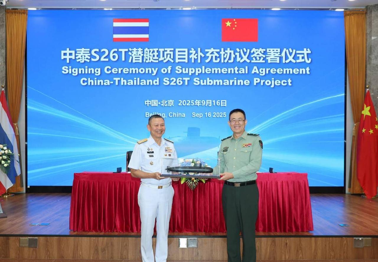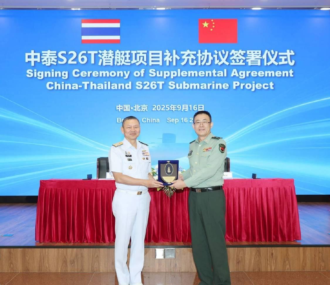 中泰联合举行S26T潜艇项目补充协议签署仪式,泰国的S26T潜艇项目最终落地 2025年9月16日,泰国海军司令吉拉蓬·旺维特上将代表泰国政府,与中国船舶重工国际贸易有限公司CSOC签署潜艇建造协议修订案。签字仪式在中国北京的CSOC总部举行。解放军装备技术合作局、中国船舶集团有限公司(CSSC)和中国船舶工业贸易有限公司(CSTC)的代表也出席签字仪式。此次潜艇建造协议修订案的签署,是根据2025年8月5日泰国内阁决议授权泰国海军总司令或其代表代表泰国政府签署潜艇建造协议修订案的。协议签署后,该潜艇将按计划在剩余的约40个月内完成建造。这包括潜艇建造、各领域维护技术人员培训以及包括潜艇艇员和潜艇舰队管理在内的技术转让。中国国防部将支持双方潜艇建造,使其符合协议并达到中国军方标准。中国国防部还将为艇员提供培训,以确保他们具备高效安全操作潜艇的知识和能力。这将增强泰国海军对该潜艇全部潜力的信心,确保成本效益和及时性。该潜艇采购项目计划于2028年底交付。泰国海军总司令在仪式上致辞时表示,S26T潜艇采购项目是一个重要项目,象征着中泰两国政府关系及其相互战略伙伴关系。双方通过友好协商共同解决项目相关问题,并最终签署了协议修正案。中方承诺按照海军要求的质量和标准建造该潜艇,并将在其他方面为海军提供全力支持,确保项目尽快完工。