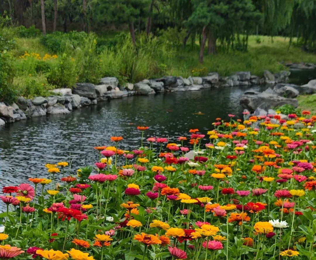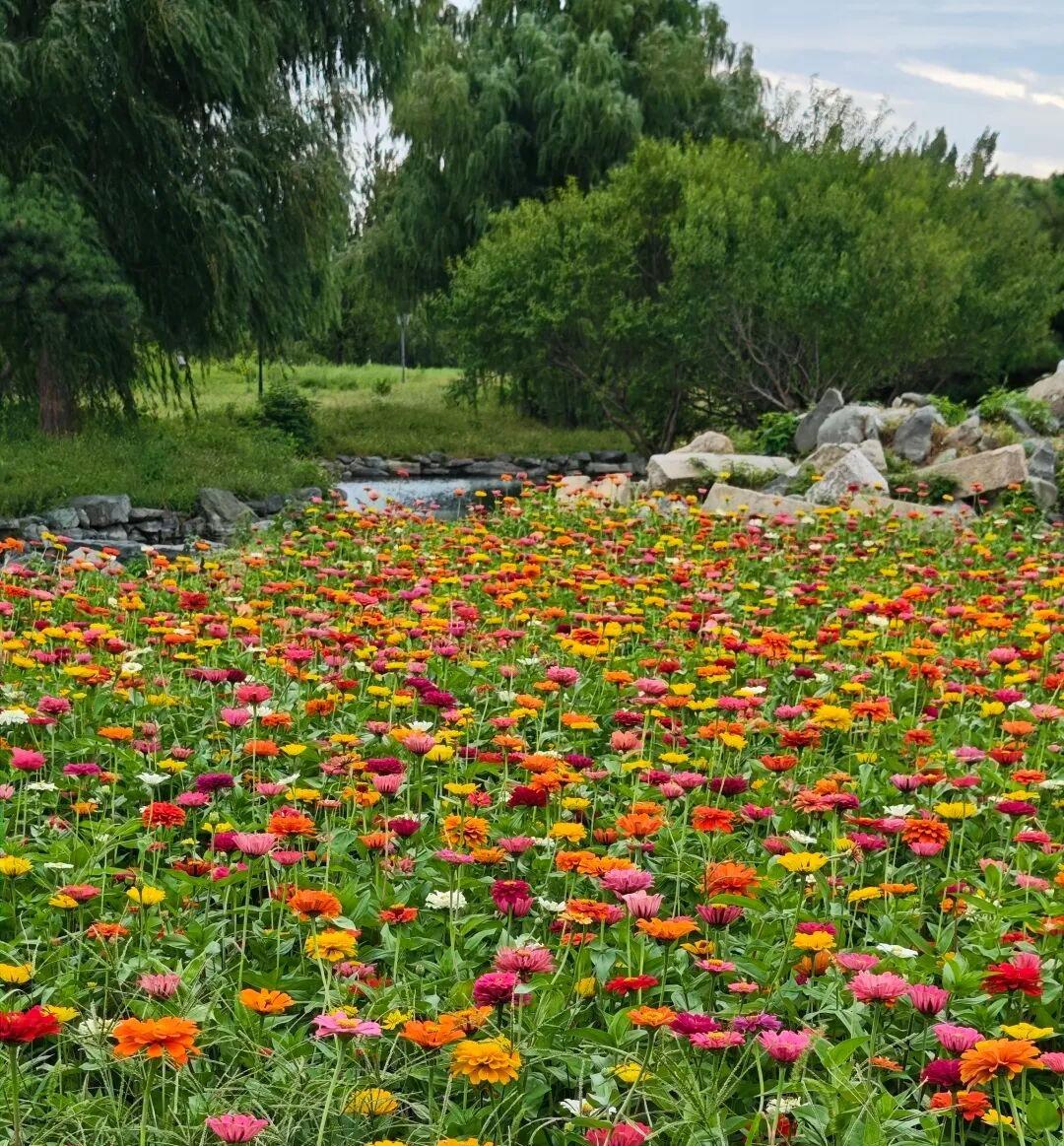 北京圆明园秋日花海 秋风有信,秋花盛开,金秋九月,圆明园花海悄然上线,五颜六色、姿态各异盛开的花朵,在秋日阳光下熠熠生辉,五彩斑斓,展现出秋日最美的画卷。 北京圆明园的花海主要种植的是黄秋英、百日菊、波斯菊等花卉,总面积达1万余平方米。最佳观赏期为每年9月至11月,目前正进入秋日盛花期。花海分布在藻园门、洞天深处、曲院风荷等区域。 圆明园的秋日花海,开在茂盛的树木之间,在大如伞盖的阔叶乔木映衬之下,更有开阔的空间感。其中藻园门左转可见的五彩混播花海,以黄秋英和百日菊为主,搭配蜿蜒小径和水景,景色宜人。园内花海与潺潺溪水相伴,花水相依形成的油画般的视觉效果。让美景更加雅致温馨。 #晒图笔记大赛#