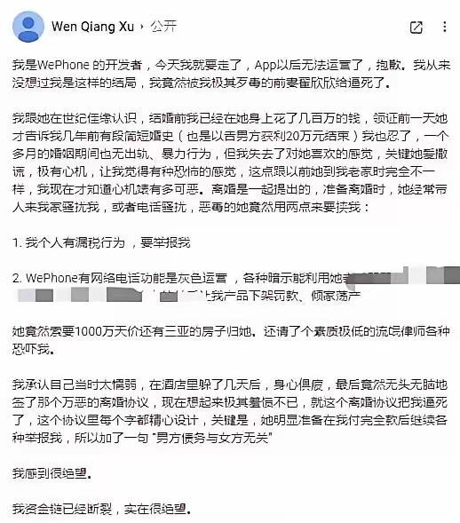 苏享茂离世前几个小时的文字曝光,不是很理解,堂堂男子汉碰到这种感情上的问题就能被逼到绝路,真不像一个创业者做出来的事。30多岁的人了,从小到大遇到的困难也不会少,况且家中还有父母和哥哥姐姐,为什么不请求他们的帮助呢?非要一个人去扛。公司里遇到的事情也完全可以拿到明面上来解决,该怎么办就怎么办,她说你透漏税款了,完全可以由税务部门来介入处理,该补缴就补缴,该罚款就罚款。怎么会选择自我了结呢? 30多岁的苏享茂竟然是恋爱脑,完全不知道对方对自己是不是真心实意,相识不过几天就用钱来砸美女,把美女砸晕了,让本来就贪财的翟欣欣觉得自己遇到了人傻钱多的主,下定决心要把他榨干。结果悲剧就发生了。大学老师的父母养育了一个歹毒的女儿,最终让苏享茂失去了事业和生命。令人唏嘘不已。