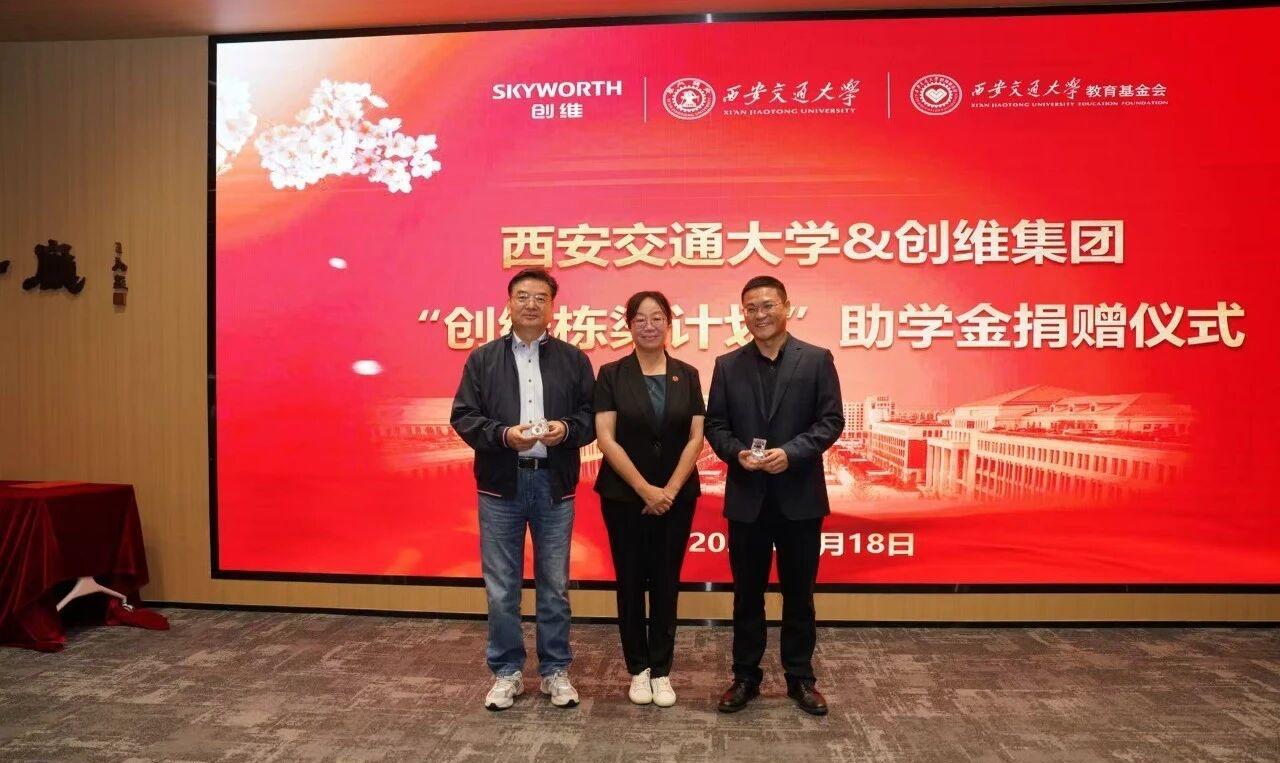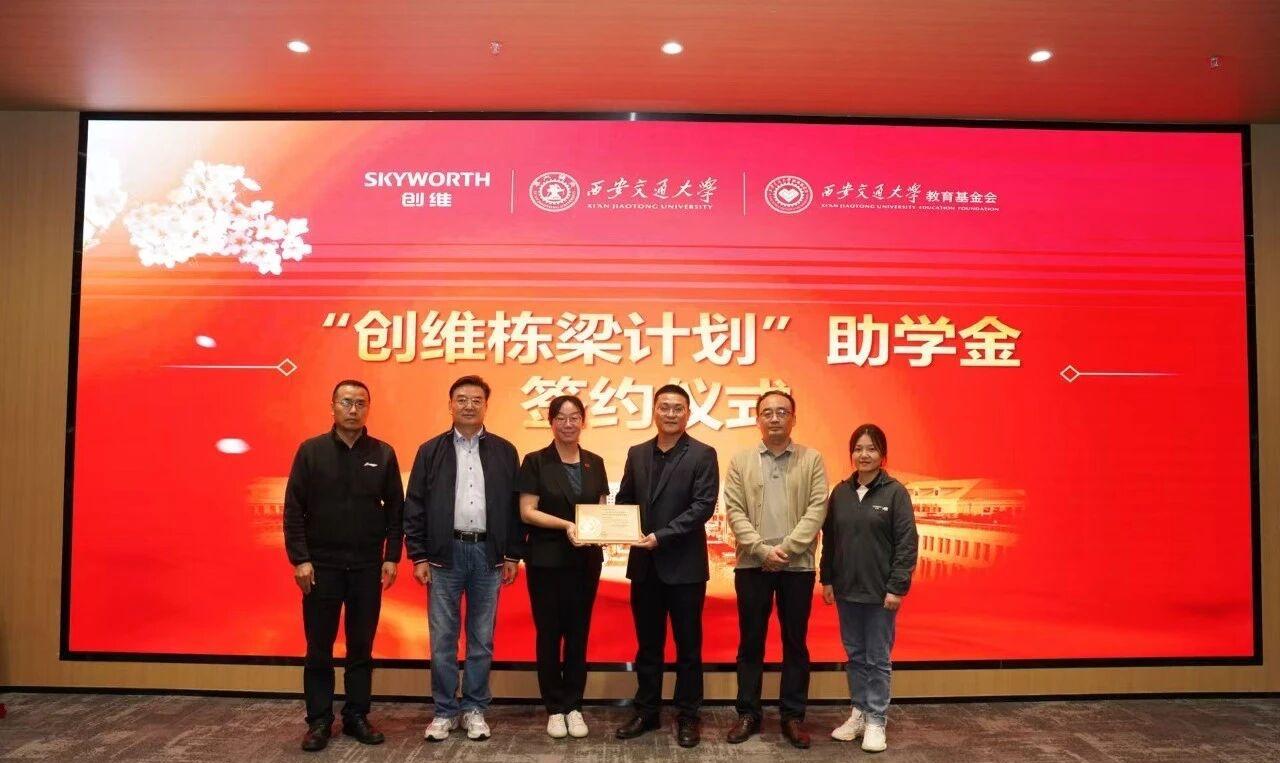 9月18日,“创维栋梁计划”助学金捐赠仪举行。仪式由创维集团吴子怡主持。捐赠仪式上,创维集团党委委员兼纪委书记、人力资源部总监、2008级徐立校友回顾了创维集团自1988年成立以来从电视遥控器制造起步,到构建智能家电、新能源光伏等科技矩阵的成长历程,强调企业的发展离不开“实业报国”的初心以及创维人对技术的敬畏、对品质的追求,同时也离不开社会的滋养与人才的支持。最后,徐立以校友身份寄语学弟学妹:“‘精勤求学、敦笃励志、果毅力行、忠恕任事’的校训始终激励着我,愿你们把握青春、无畏前行,勇担责任与使命,成为社会真正的栋梁。”西安交通大学教育基金会副秘书长赵力赵力表示,西安交通大学家庭经济困难学生长期占比约30%,正是创维集团等社会力量的关心与支持,为学子成长提供了坚实保障。仪式上,赵力与创维集团品牌管理部高级经理孙妮孙妮代表双方签署捐赠协议,创维集团智能装备公司董事长、1984级校友李小放、徐立、电气工程学院党委副书记宋杰、党委研究生工作部副部长胡龙见证签约。赵力向徐立颁发捐赠纪念铭牌。赵力为李小放、徐立校友送上象征母校与校友之间永恒联结的西安交通大学纪念戒指。