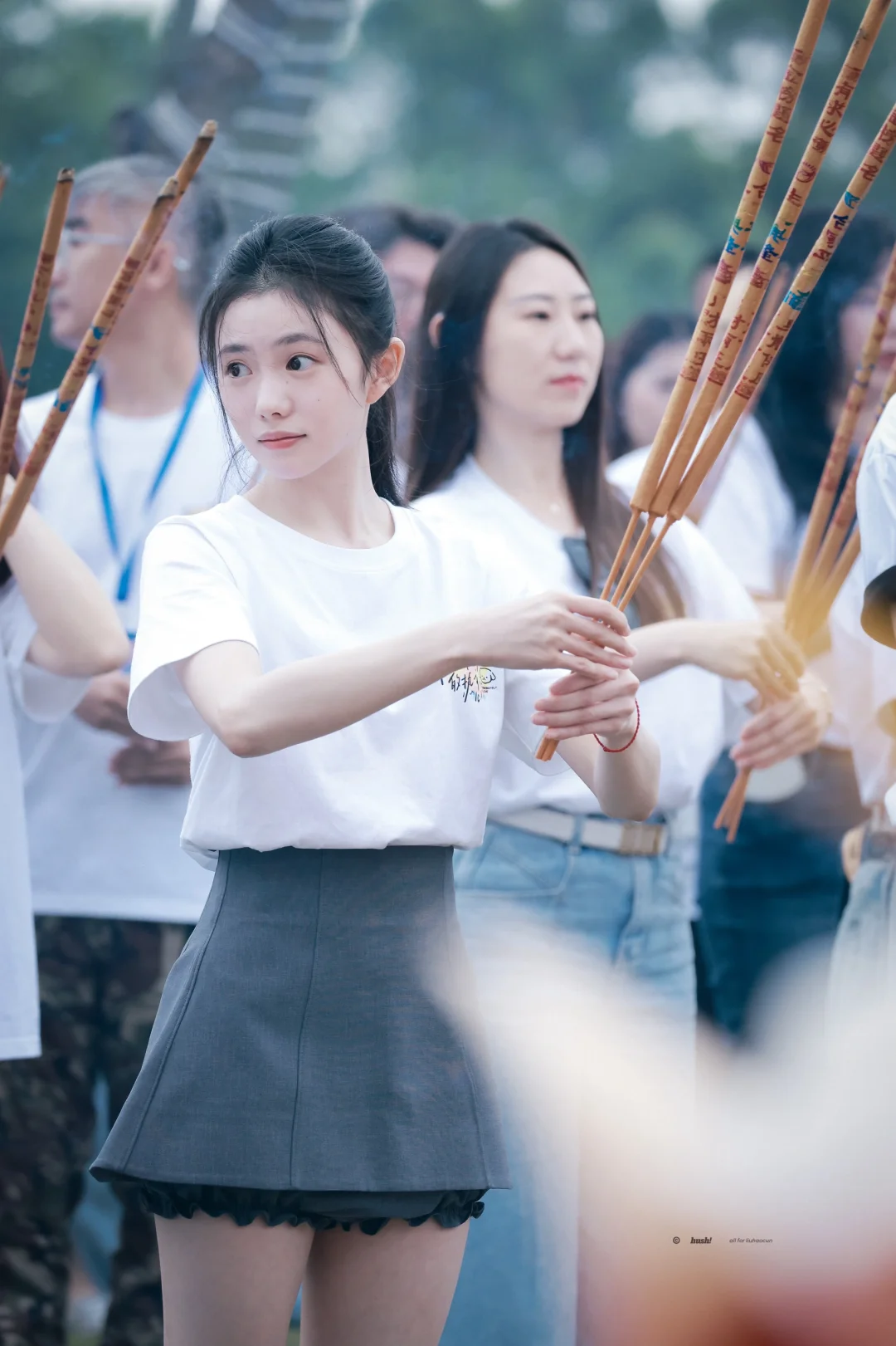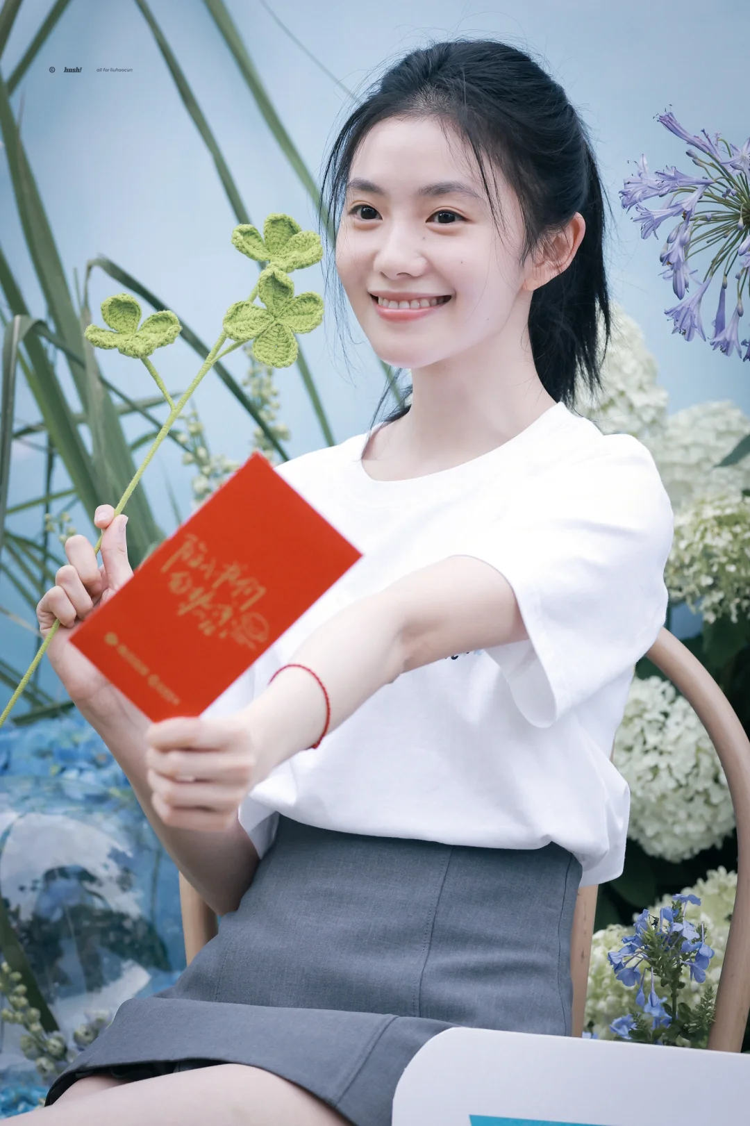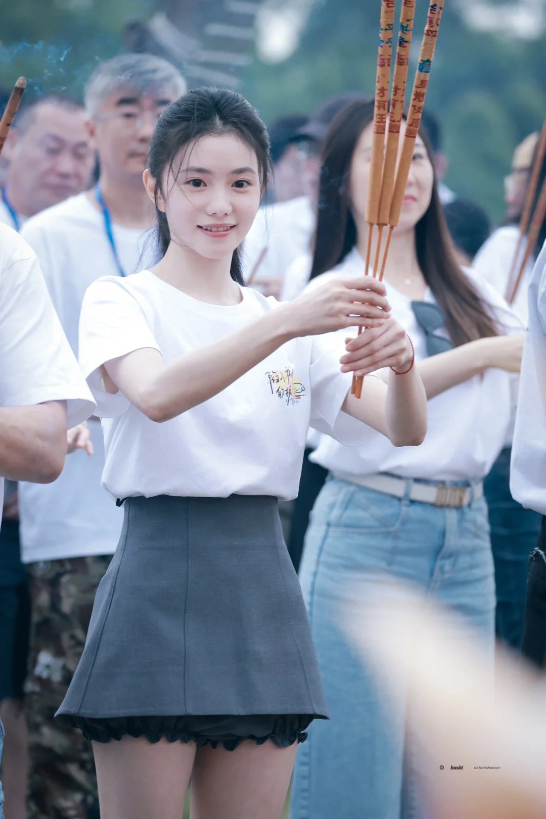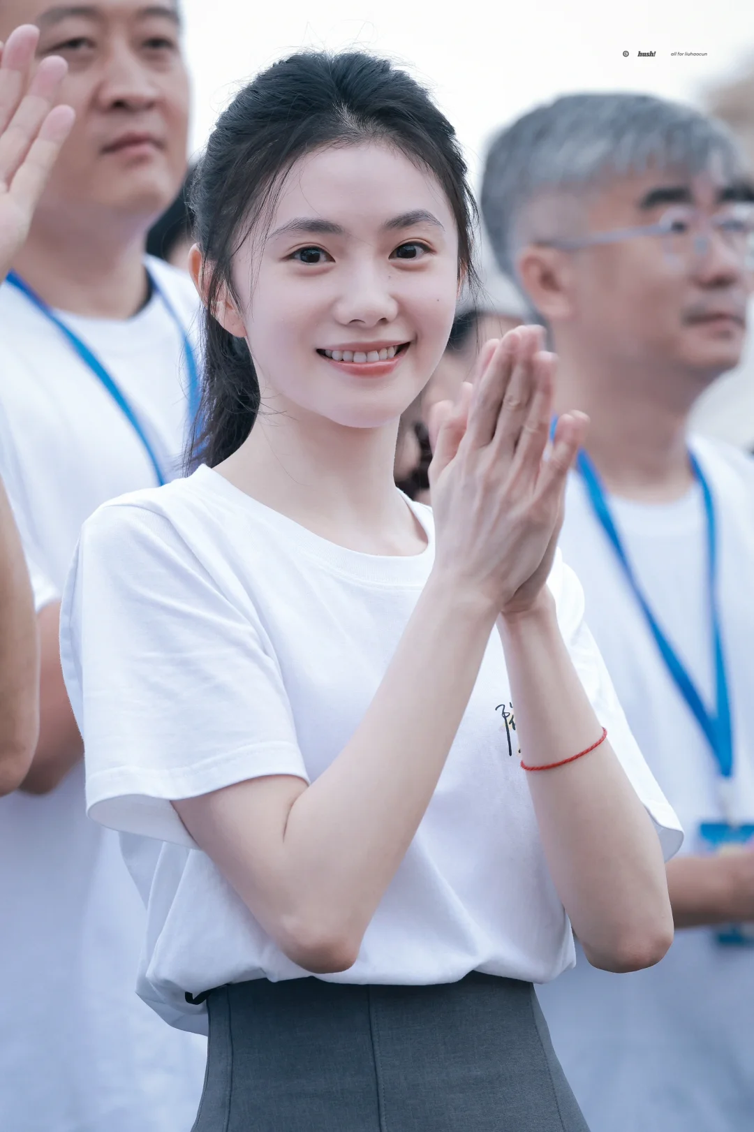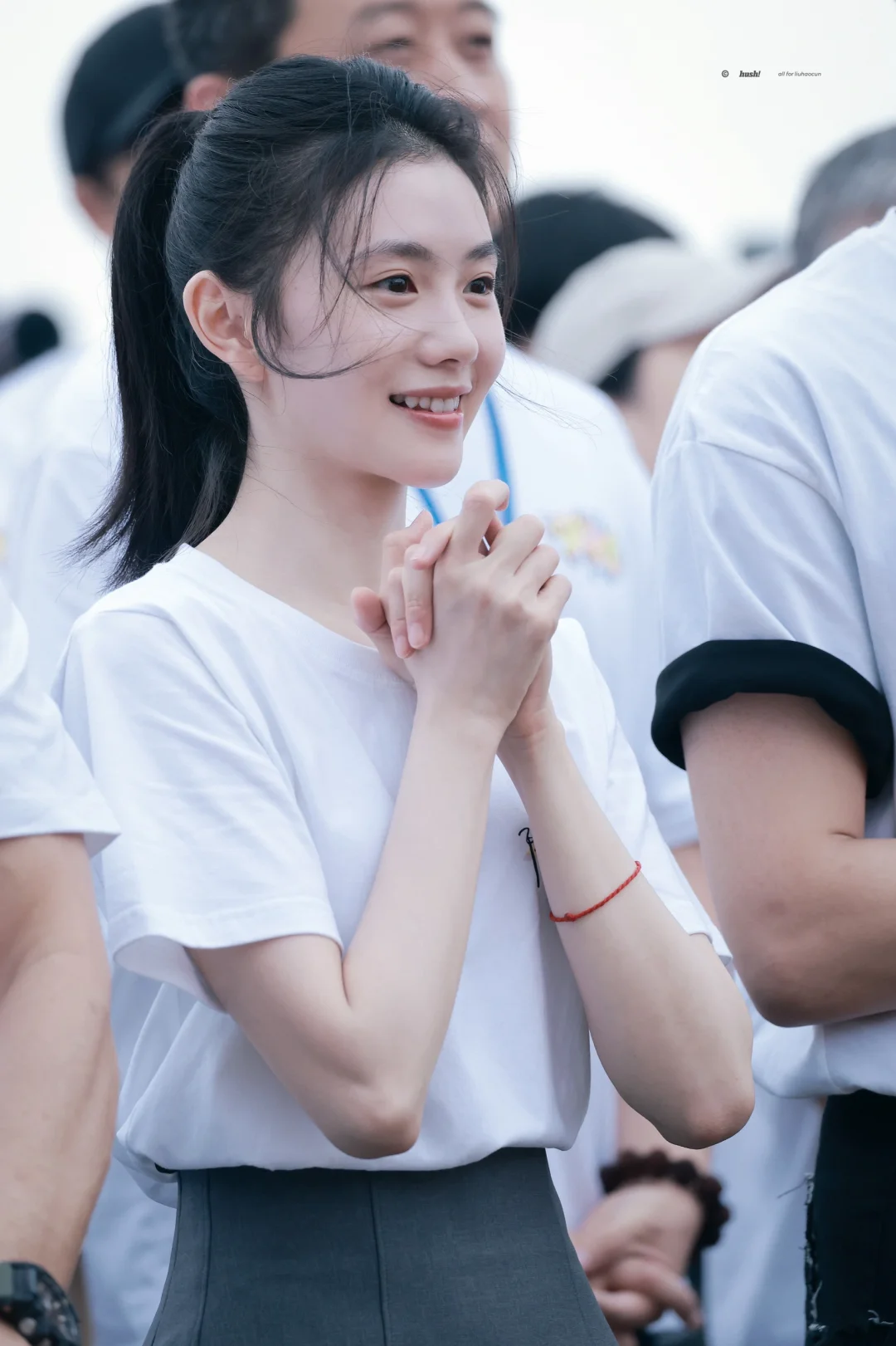 刘浩存今日开机穿搭,简单白T搭配灰色短裙,清爽又活力满满,这张脸真没话说!