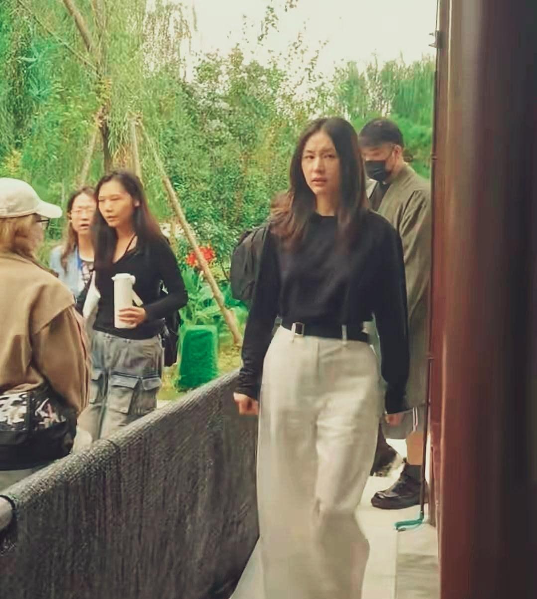 王子文录节目,身穿黑色唐装配白色阔腿裤,个子不高的她身材比例真好!衣品也是一顶一的好,小个子大气场!#王志文#