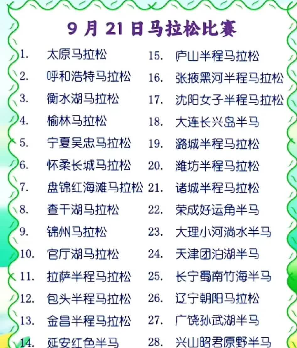 真的不敢相信,本月9.21日,也就是后天周日,全国有差不多28场马拉松,如果一场