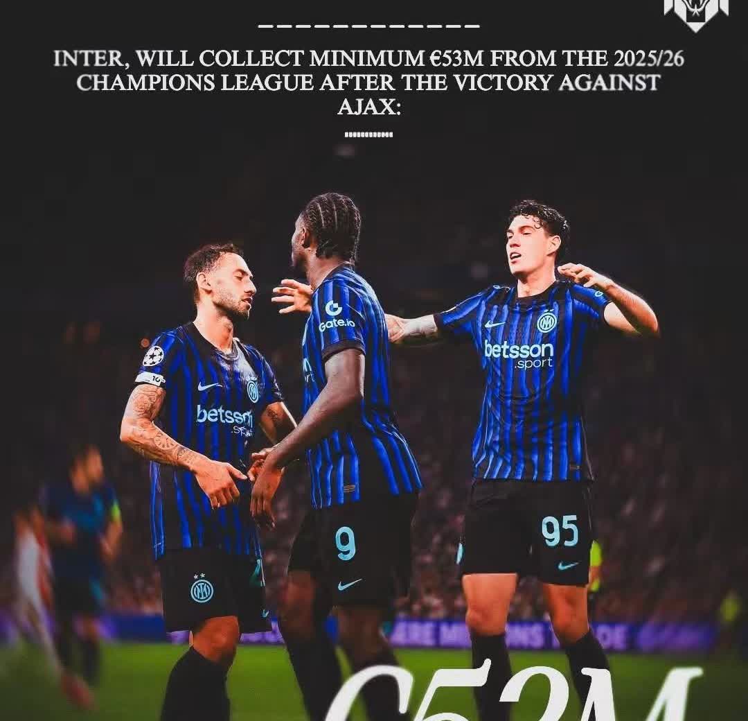 真吸金!欧冠小组赛第一轮结束,国际米兰2:0轻取阿贾克斯取得开门红,顺便进账21