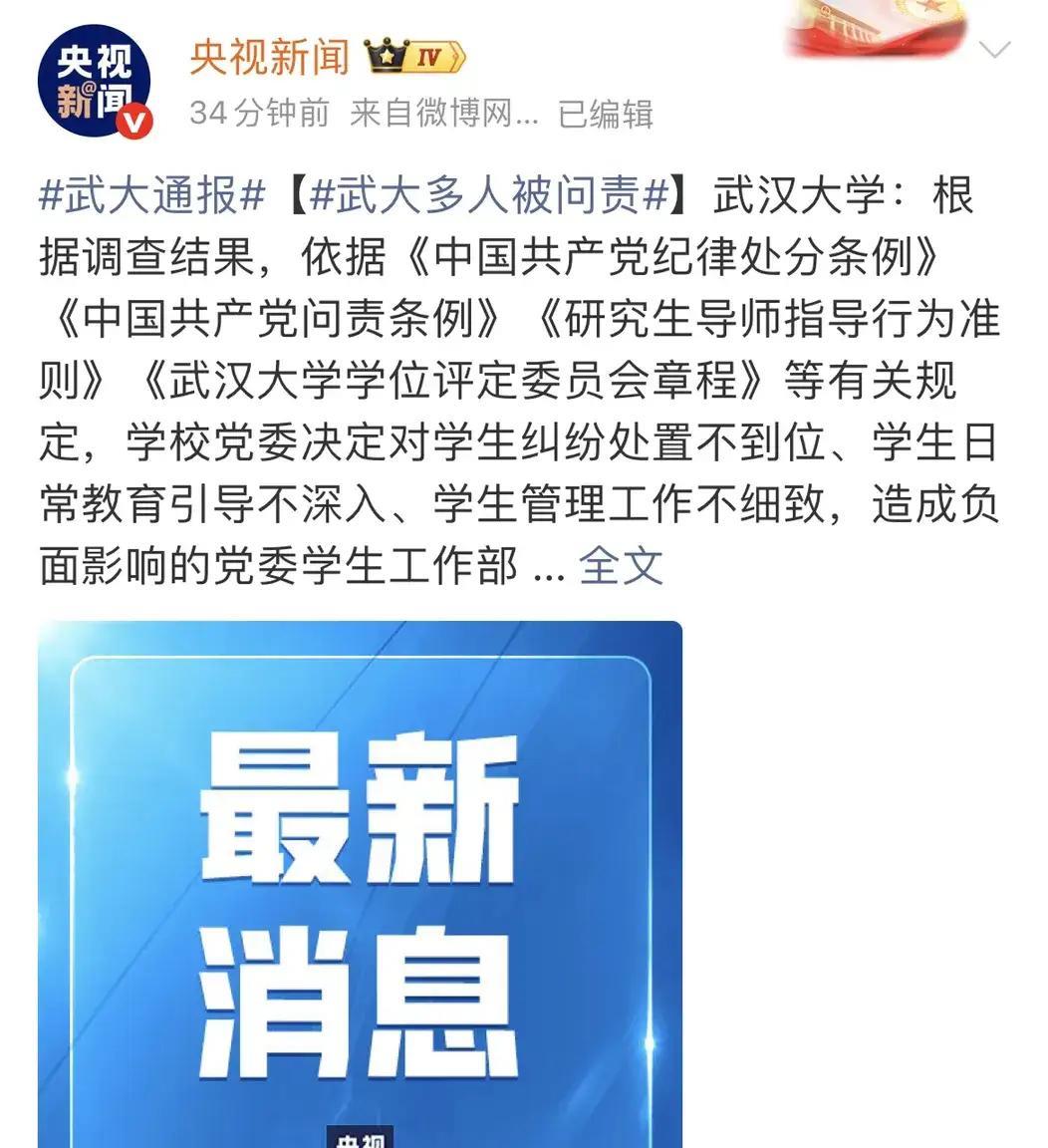 武汉大学的事情,应该可以告一个段落了,该换的该处理的均一处理,谈判罚结果给予
