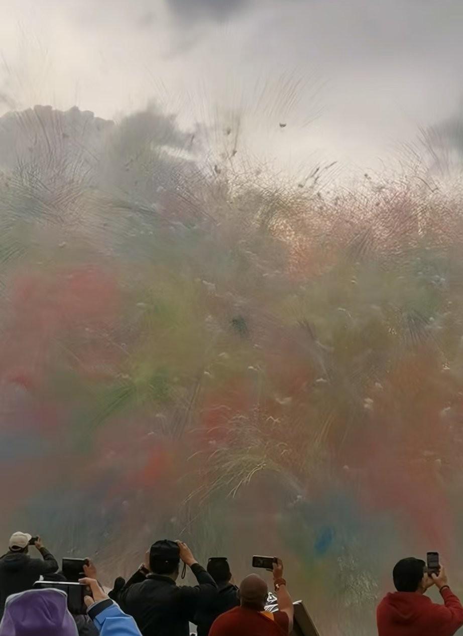始祖鸟这钱估计是白花了,放完了烟花差评一片。蔡国强连续两年的烟花秀都不太顺,去年