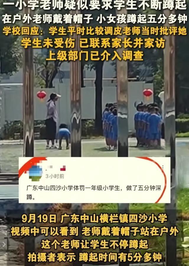 这位老师又倒霉了!因为体育课上一个小女孩不守纪律,她让这个女孩子蹲五分钟。 后来,老师已经当面道歉。 还不行! 现在体育老师要被处理了!上级教育部门已接入调查。 这上级教育部门,对老师也太不负责任了!孩子不守纪律,这点惩戒也不可以?再说,也没有伤到孩子哪?这就是侮辱她了? 如果老师不管她,其他孩子被打扰,就公平吗?