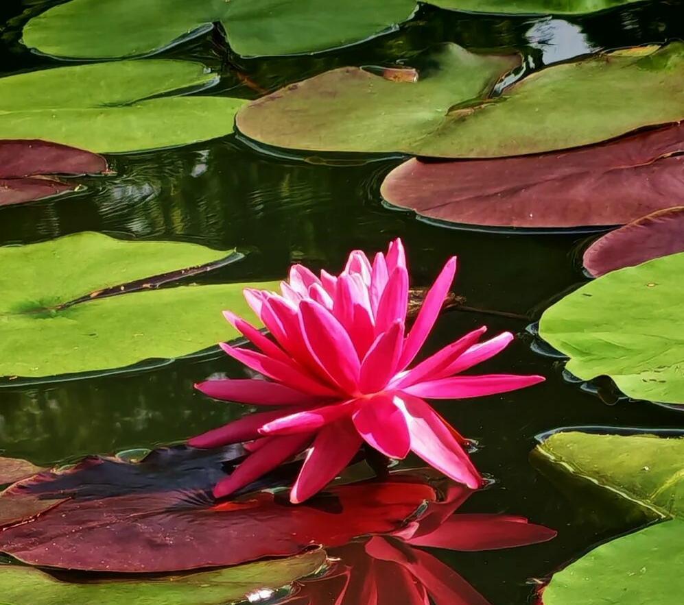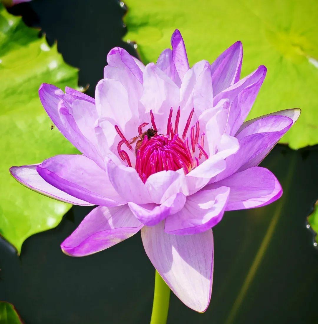 国家植物园的“水上莫奈花园” 周末天气晴好,陪着学绘画的小孙女练写生,再次走进被誉为“水上莫奈花园”的国家植物园水生与藤本植物区,再次欣赏了这里140多种睡莲在光影间的万千姿态。 正值盛花期的各色睡莲开得缤纷热烈,红、粉、黄、白、紫、蓝的出水芙蓉,亭亭玉立于水面,一些珍稀品种如“夹克潘”睡莲花色还会随着温度变化,白色变为红色,一池千姿百态的睡莲,在阳光下闪着梦幻的光泽,争奇斗艳! 国家植物园南园依托中国科学院植物研究所,拥有睡莲国家种质资源库,长期开展睡莲引种、培育和保护工作,睡莲品种多,花色奇艳,真无愧是"“水上莫奈花园”! #晒图笔记大赛#
