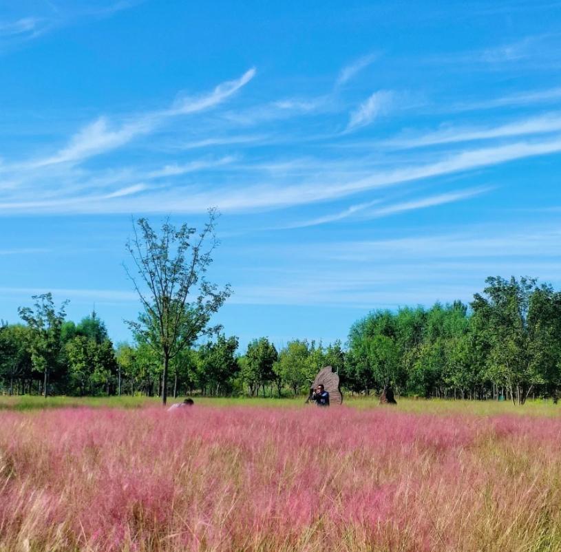北京温榆河公园粉黛乱子草初开 九月的北京,空气清新湿润,气温舒爽宜人,北京温榆河公园来广营园区里的粉黛乱子草已经初开,正处于“蓄力绽放”的生机勃发之期。蓬松的花穗被纤细的草茎托起,似少女脸上羞涩粉晕的一片朦胧的粉色,从叶尖蔓延开来,似云似雾般在秋风中摇曳,静静等待着十月"双节"游客的到来。 温榆河公园位于朝阳、顺义、昌平三区交界,总面积约30平方公里,是京城大型生态公园之一,被誉为首都最大的“绿肺”。公园以生态修复为核心,拥有丰富的动植物资源和湿地景观,粉黛乱子草花海是其特色景点之一,走进这片花海,阳光下的粉黛子草好似一片粉色的云海,人在其中,就像步入一个童话世界。园内粉黛子花圃虽没有奥森公园的大,但这里游人相对较少,拍照比较自由,拍照更出片。 #晒图笔记大赛#