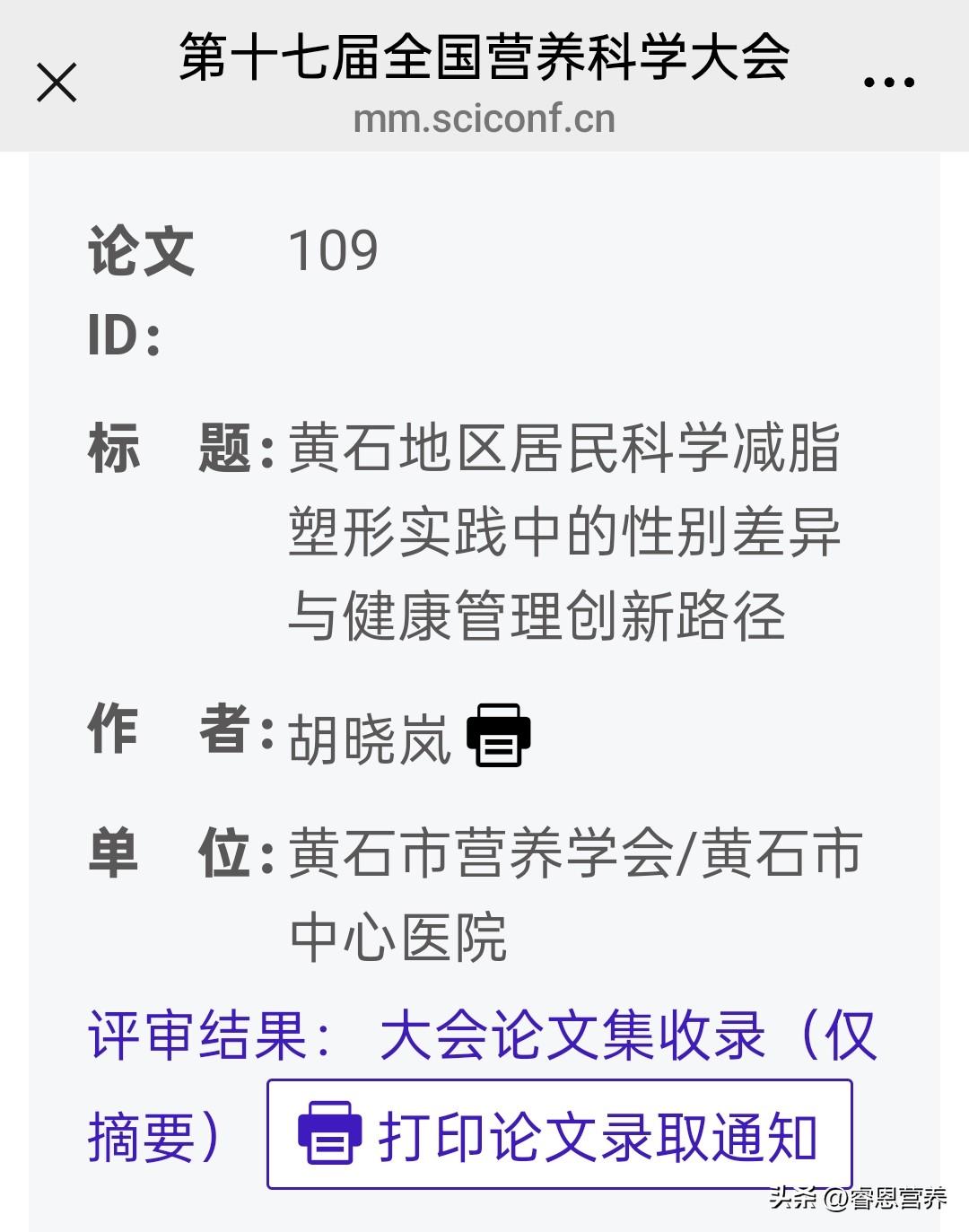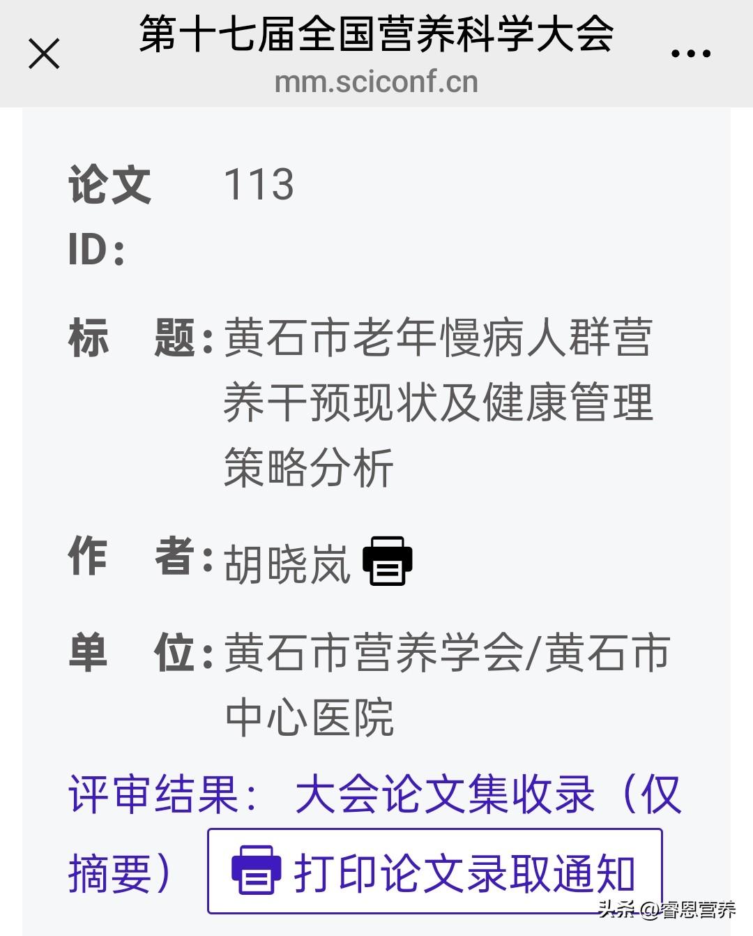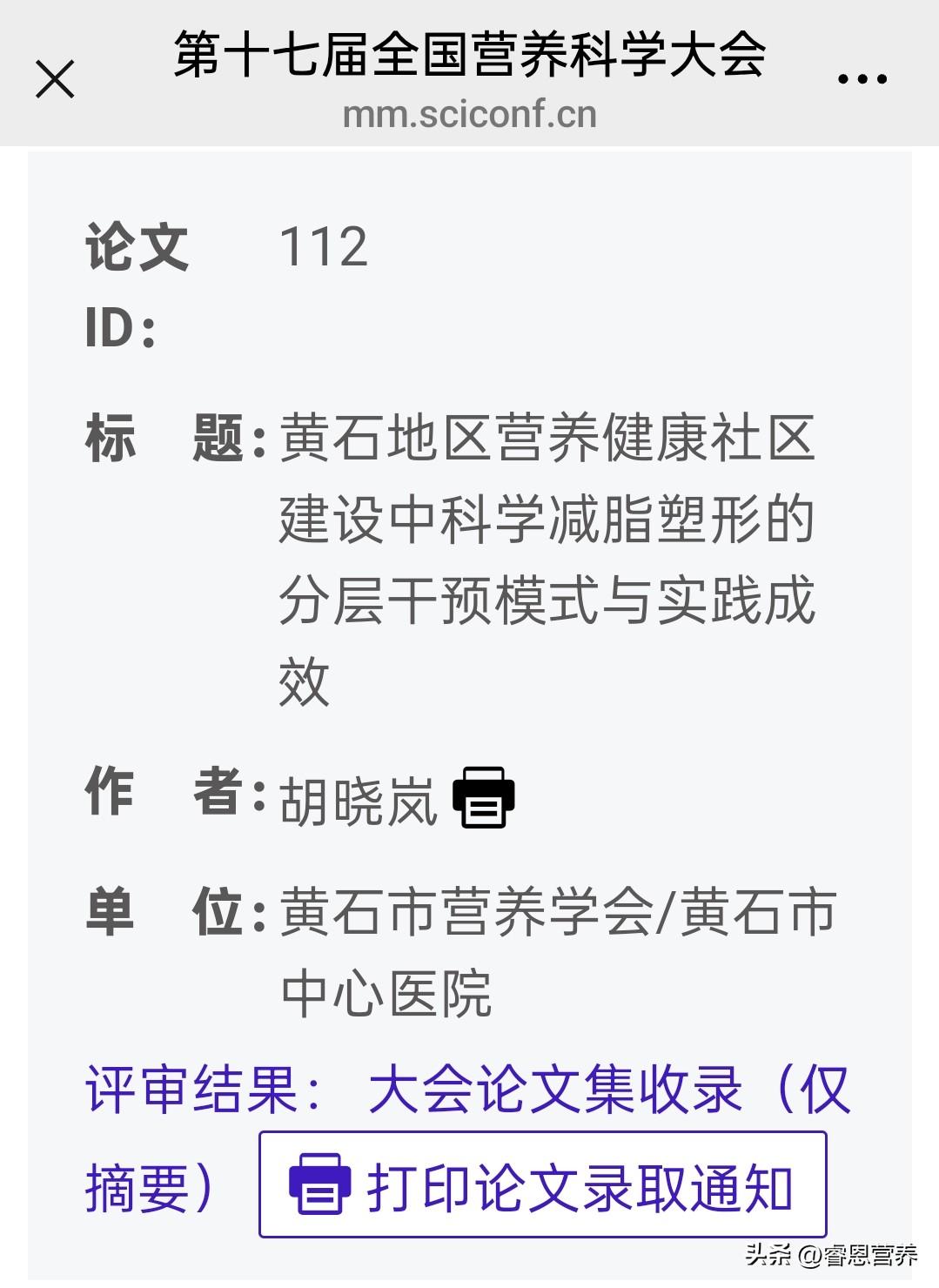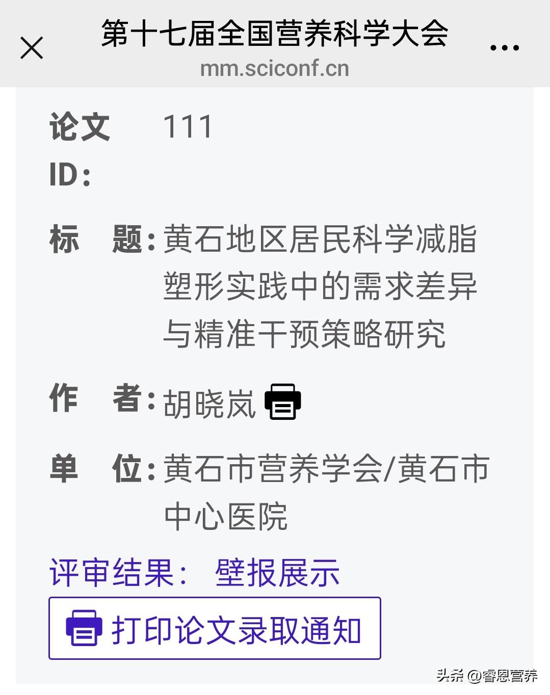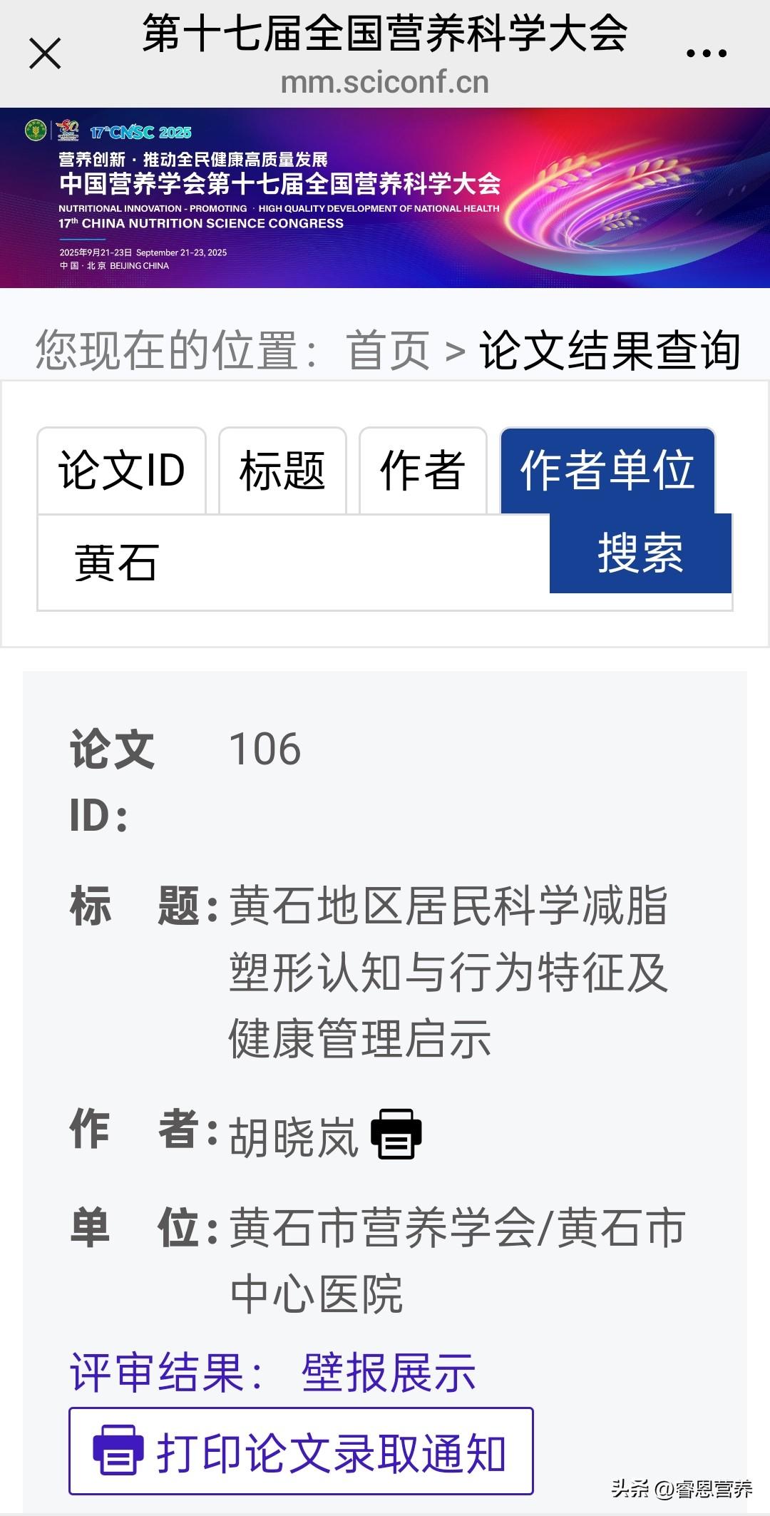 2025全国营养科学大会,黄石7篇论文参与大会交流及录用展示。
