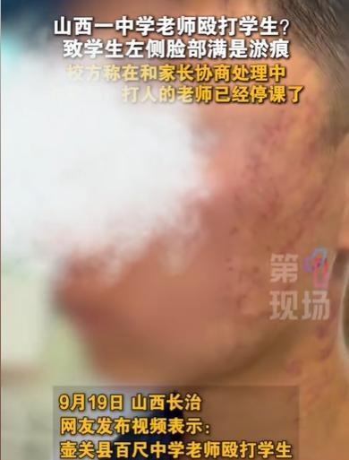 山西长治,家长看到自己的孩子,竟然被老师打,左脸全是淤痕,左眼角都有了淤血,他很