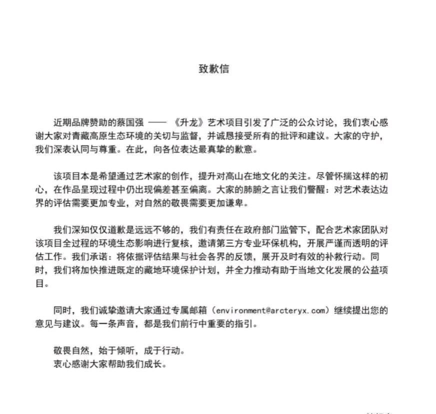 “蔡鸟组合”发致歉文书了!赶紧公关走一波,以消除喜马拉雅烟花秀造成的舆论负面影响。 两篇文章主旨一样,就是考虑不周,重新评估,尽力补救。 这个“前无古人”的烟花秀据称他准备了30年,和他移居海外的时间一样长,本想致敬西方艺术,可日本的小豆岛出于环保考虑拒绝了他的提案,然后才选中喜马拉雅。 很多情况不是道歉就能完事的,人类也不配替大自然接受道歉。 对地球母亲,不管是艺术家还是普通人,都得有基本的敬畏之心和珍爱之心啊!