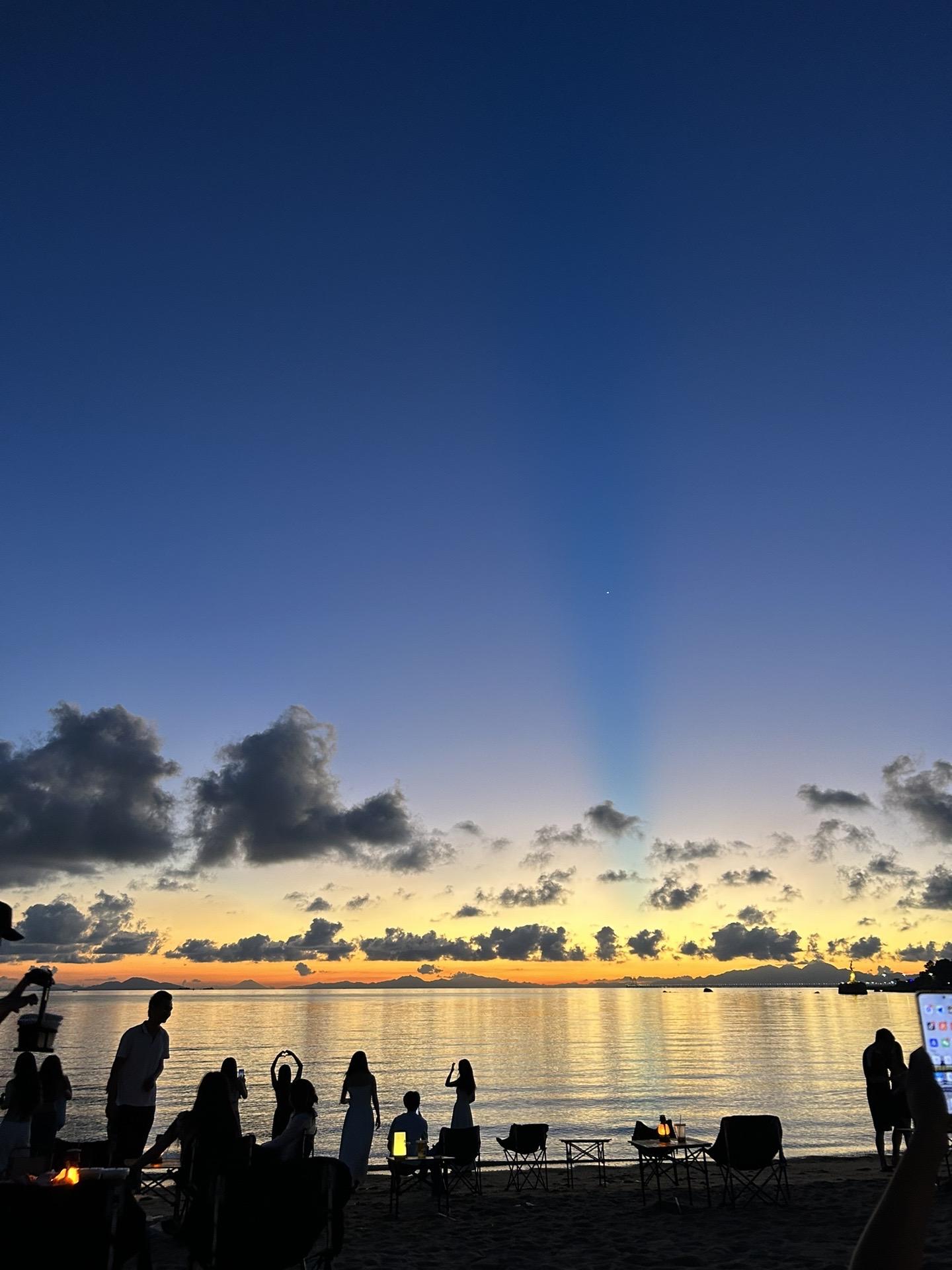 宝子们!海边日落真的太好拍了!今天穿的这件渐变泳衣,颜色和晚霞几乎融为一体,剪裁